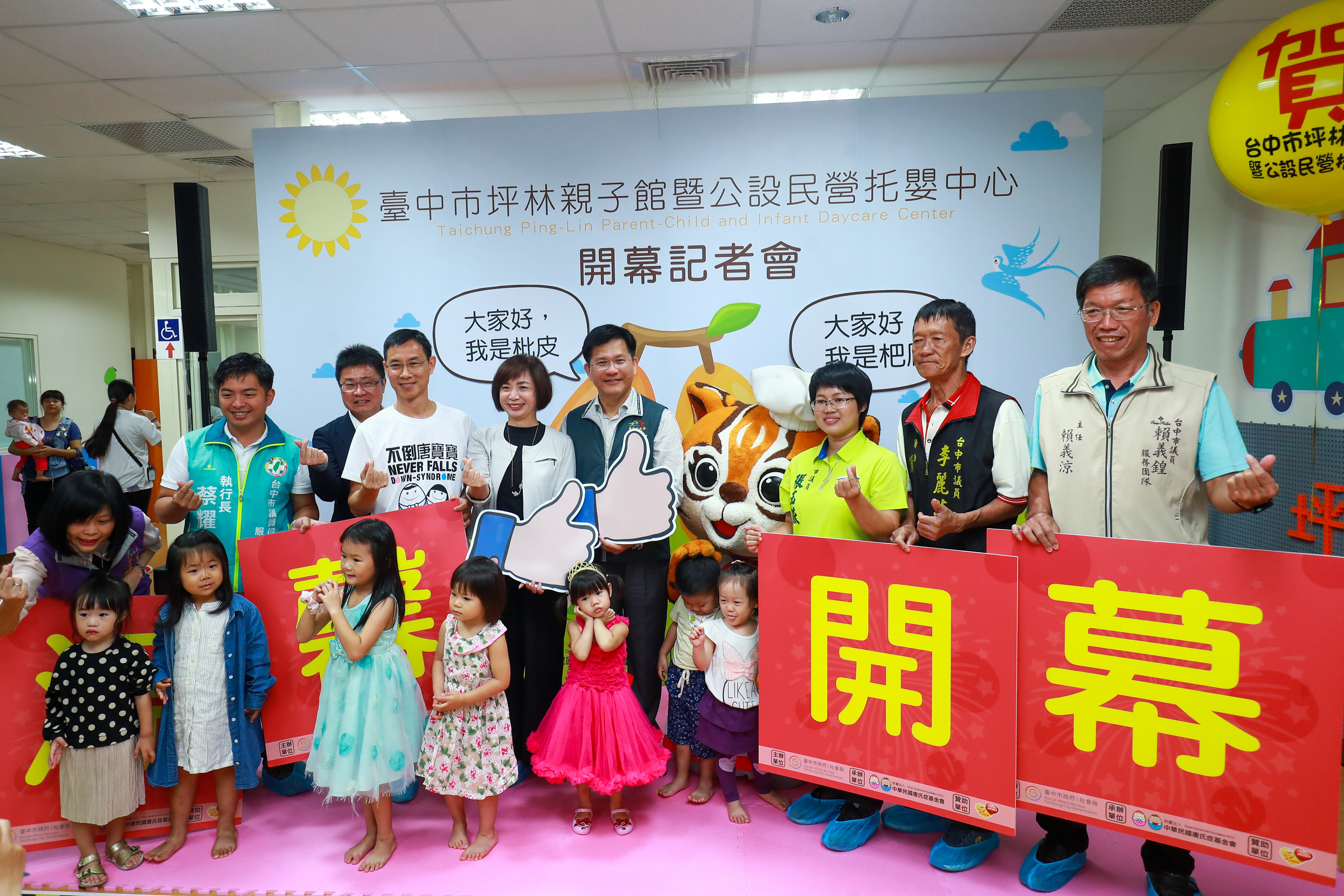 太平區坪林親子館暨公設民營托嬰中心,是台中首座結合親子共玩與托育服務的場館,今(9)日開幕,規劃五大探索區並設托嬰中心,可收托30名嬰幼兒。市長林佳龍表示,坪林親子館可提供不同年紀的孩子良好照顧環境,市府會持續推廣,朝一區一親子館的目標邁進。