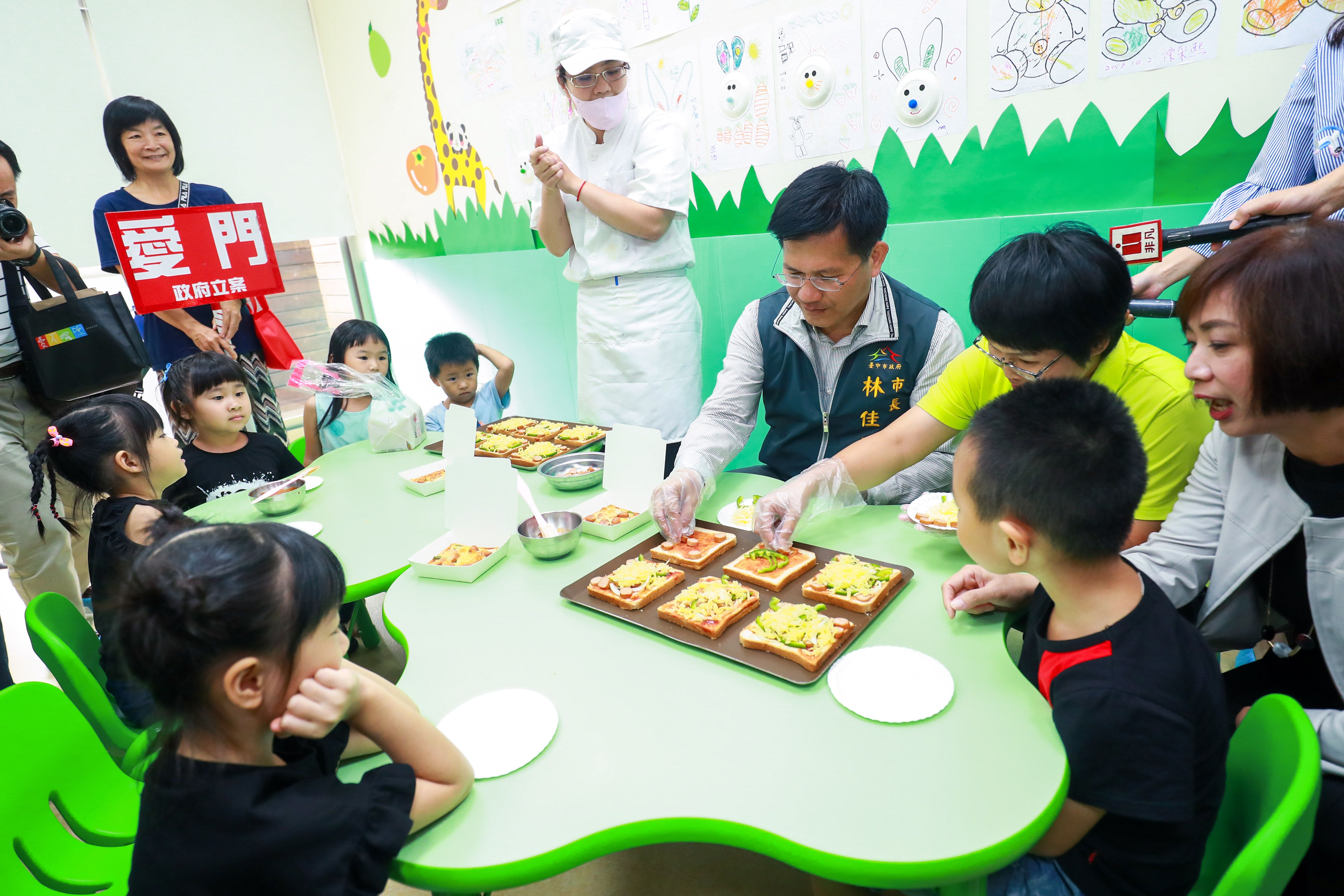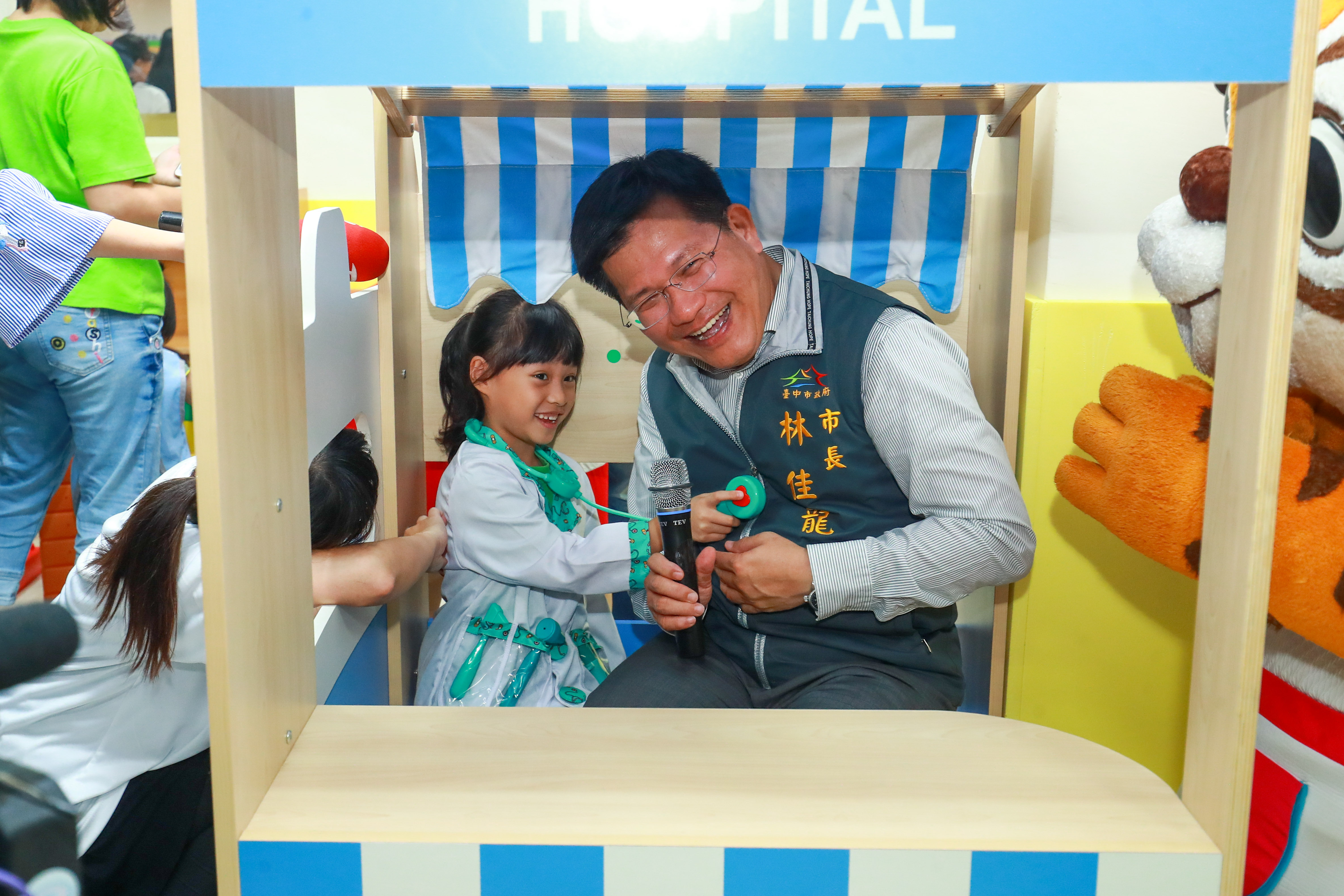 林市長表示,很多家長可能有不同年紀的孩子,需要不同的托育或照顧服務,而太平坪林親子館結合了托嬰中心,0至6歲的孩子都可以在這裡得到照顧,讓家長不僅能送托嬰幼兒,年紀稍大的孩子也能在同樣的空間快樂學習;市府將持續朝一區一親子館的目標邁進,提供更多家長及孩子多元化的照顧空間。