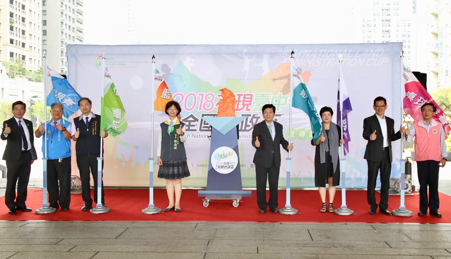 地政局張局長表示,全國地政盃活動是一年一度的盛事,由各縣市輪辦,今年由台中市主辦,很高興恰逢花博盛會,第36屆地政盃活動以「2018花現台中」為主軸,結合花博推動,共有包括桌球、羽球、壘球、籃球、趣味競賽、歌唱等六大賽事,吸引全國51個單位、231個隊伍,大約2,500位選手參與。
