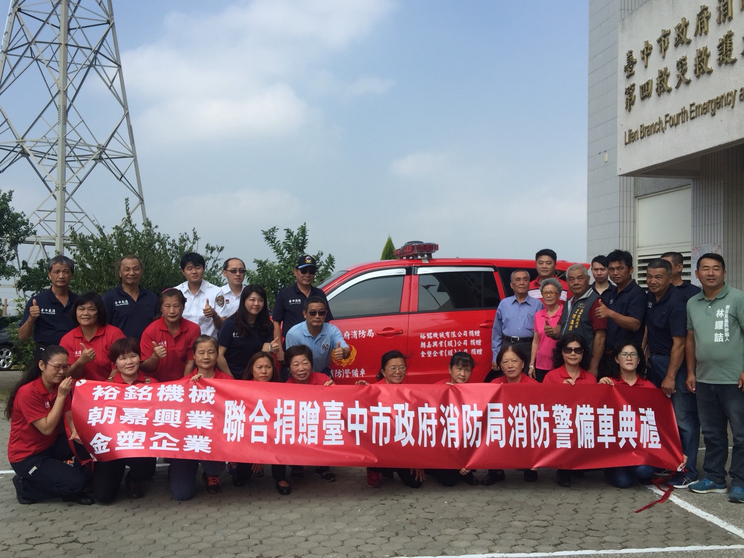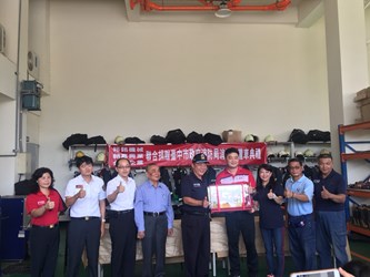 有感於消防隊員救災辛苦及冒險犯難的精神,裕銘機械、朝嘉興業及金塑企業等公司將感謝化為實際行動,今(9)日聯合捐贈1輛消防警備車給台中市政府消防局,並由消防局副局長曾進財代表受贈。曾副局長感謝企業善行,消防警備車對執行各項消防及救災勤務,深具助益,不僅可有效提升消防工作效能,也讓民眾生命財產安全更有保障。