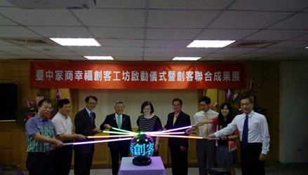 台中家商今(19)日舉辦「幸福創客工坊啟用儀式暨創客聯合成果展」,副市長張光瑤前往關心各校成果展攤位,作品種類包括3D列印、雷射切刻等創客作品,具體展現近年創客教育的推動成效;現場還有小型服裝表演,由流行服飾科學生設計,搭配資料處理科以3D列印和鐳射雕刻,採用「吉、旺、福、祿、滿」等民俗節慶元素製作的耳環吊飾.氣氛熱鬧。