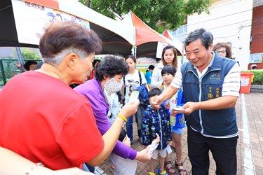 今(20)日早上后里區在地里長於后里區公所前,發放鄉親日邀請票卡給后里在地居民,現場拿到票卡的大小朋友都相當興奮,期待花博的到來。