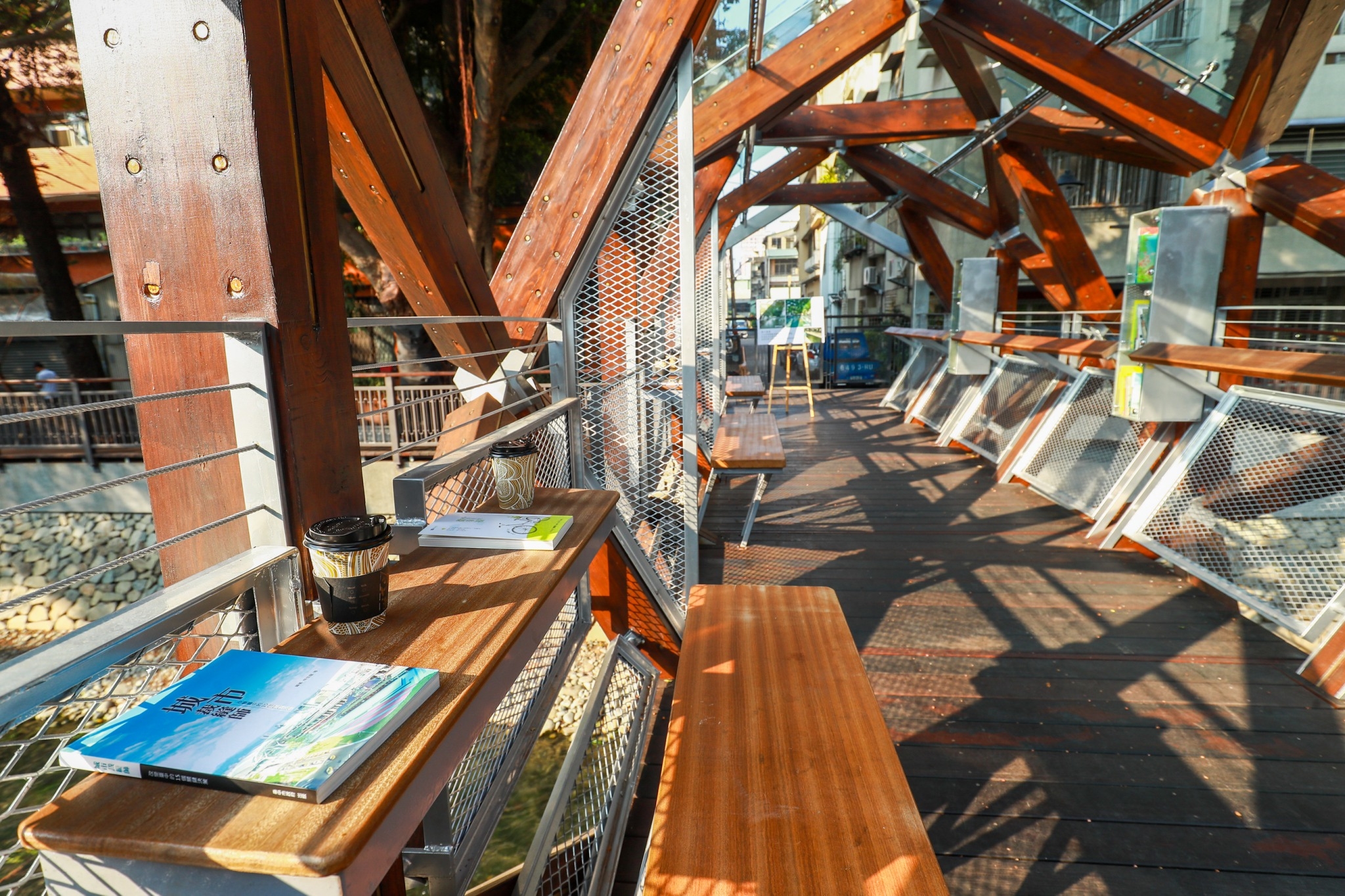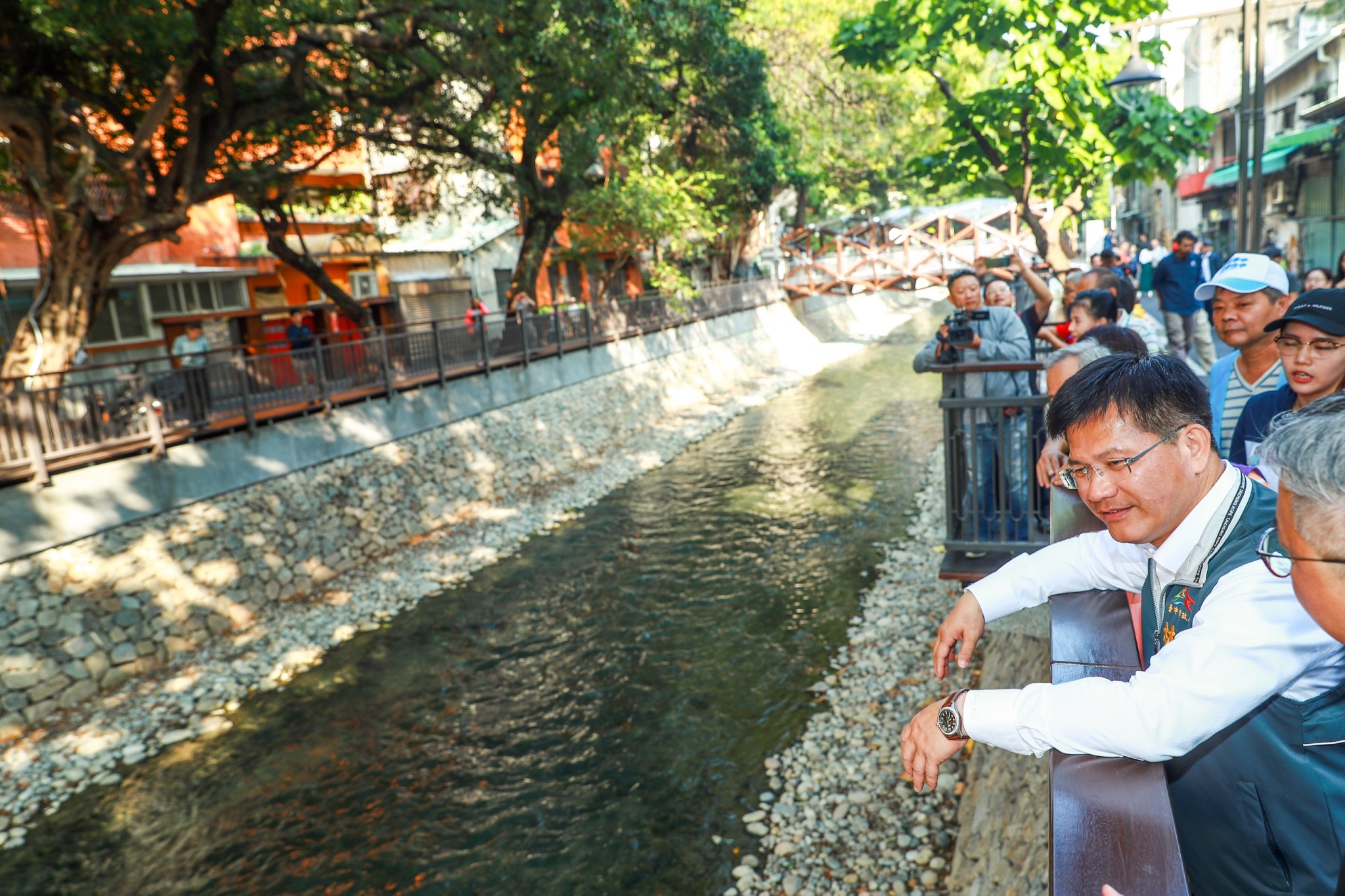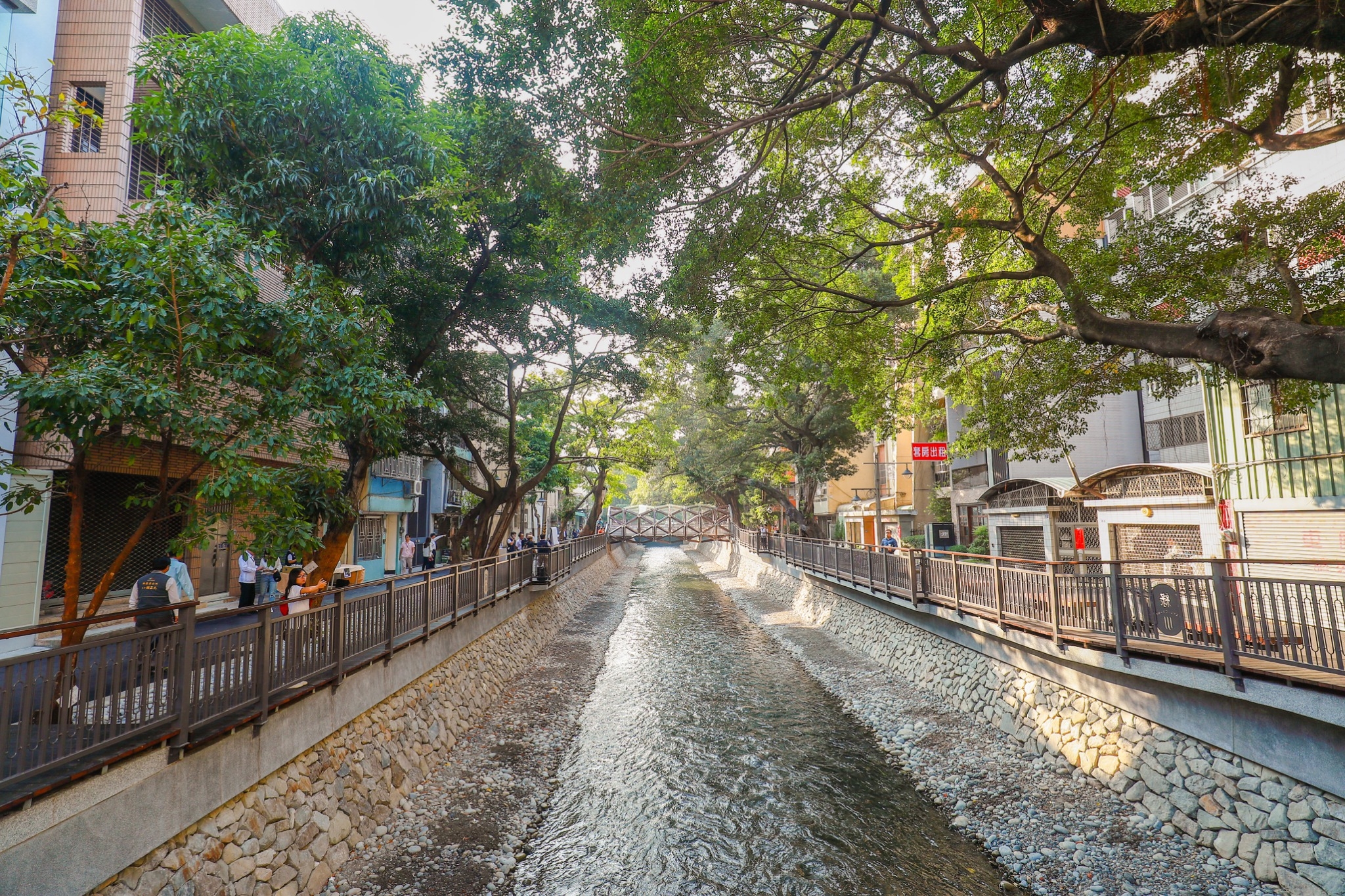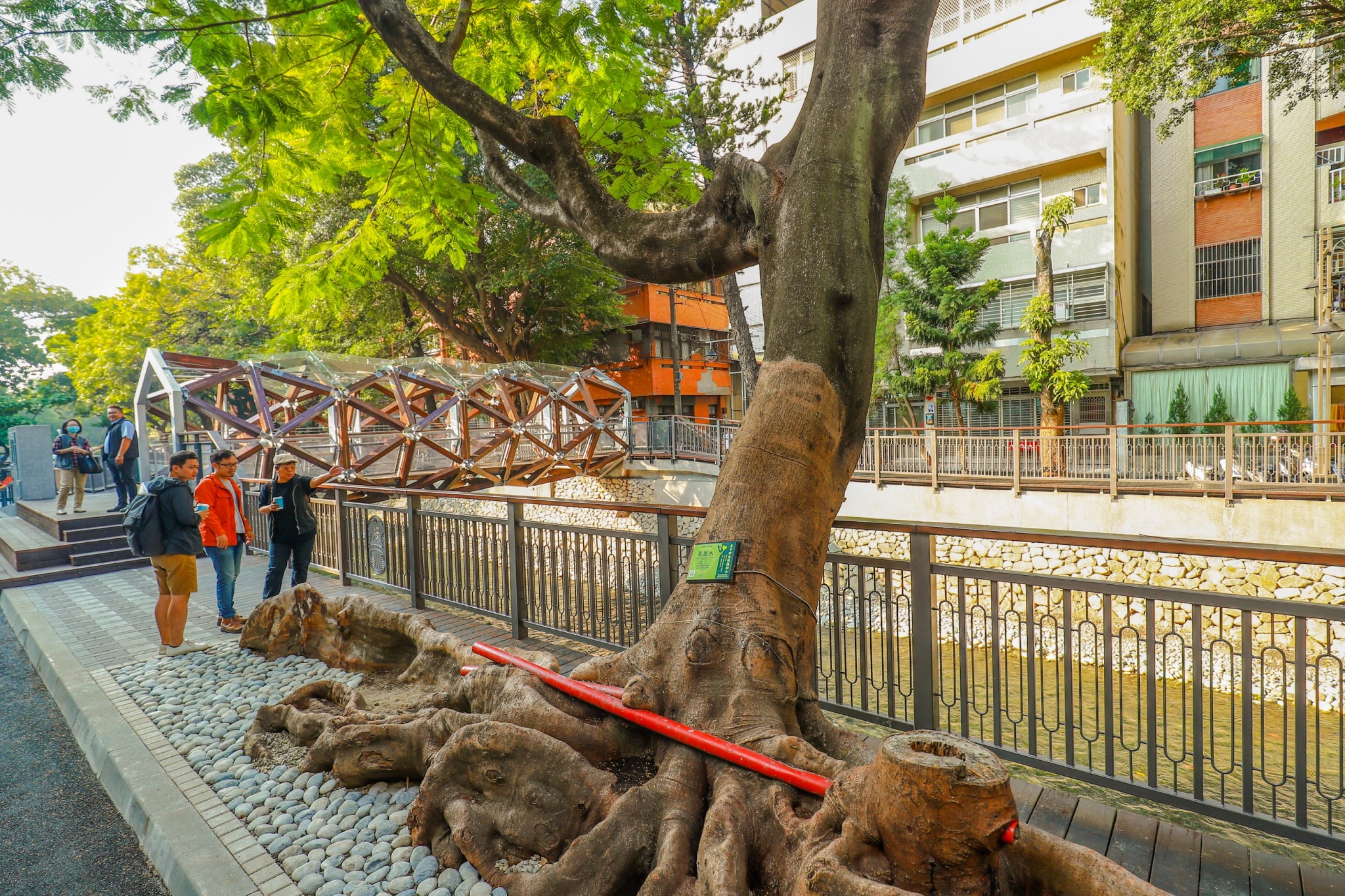 水利局長周廷彰表示,復興路至愛國街段已完成建置汙水截流管道及河岸環境改善,保留基地上老樹,搭配樹木維護及樹穴設置機制改善老樹生長環境。同時,強化原有河堤之人行步道空間,打造「書屋橋」,營造悠閒的閱讀氛圍,期盼文藝風貌的水岸景觀休憩空間,能夠醞釀出土地與居民、居民與書籍的美好的關係。