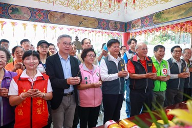 林市長今日在水利局長周延彰陪同下視察綠川第二期工程復興路至愛國街段,市議員邱素貞、何敏誠也到場關心。之後並共同前往鄰近的長春福德祠祈求工程順利,林市長並與在地民眾合照,氣氛熱絡。