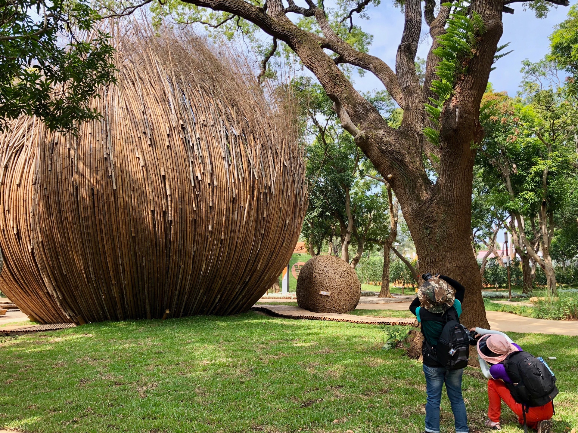 此外,后里森林園區「從天上掉下了一顆種子」是藝術家林舜龍運用自然素材結合周邊環境打造的裝置藝術,巨大的種子落在台灣這塊土地,孕育豐沛的生命力,讓觀者重新思考人與自然的關係。