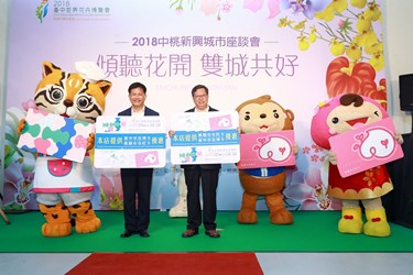 「2018中桃新興城市座談會」今(23)日在台中花博后里森林園區登場,市長林佳龍與桃園市長鄭文燦互換「台中花博卡」及「桃園市民卡」,宣布花博期間兩市市民憑卡至貼有「桃園市市民卡X台中市花博卡」貼紙商家,即共享跨市優惠。此外,12月10至14日為台中花博桃園「縣市週」,桃園市民可享花博門票半價優惠。鄭市長盛讚台中擁有一位好市長,相信台中花博一定可讓台灣的大型活動達到高峰,也值得其他縣市交流學習。