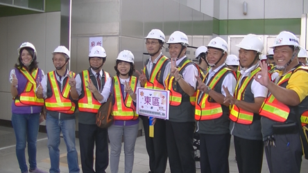 為迎接台中第一條捷運,交通局除持續密集測試各項機電系統,近日也正式展開試運轉作業。王局長昨日率領約200位市府人員進行全線視察,自北屯機總站搭乘電聯車一路行駛至台中高鐵站。