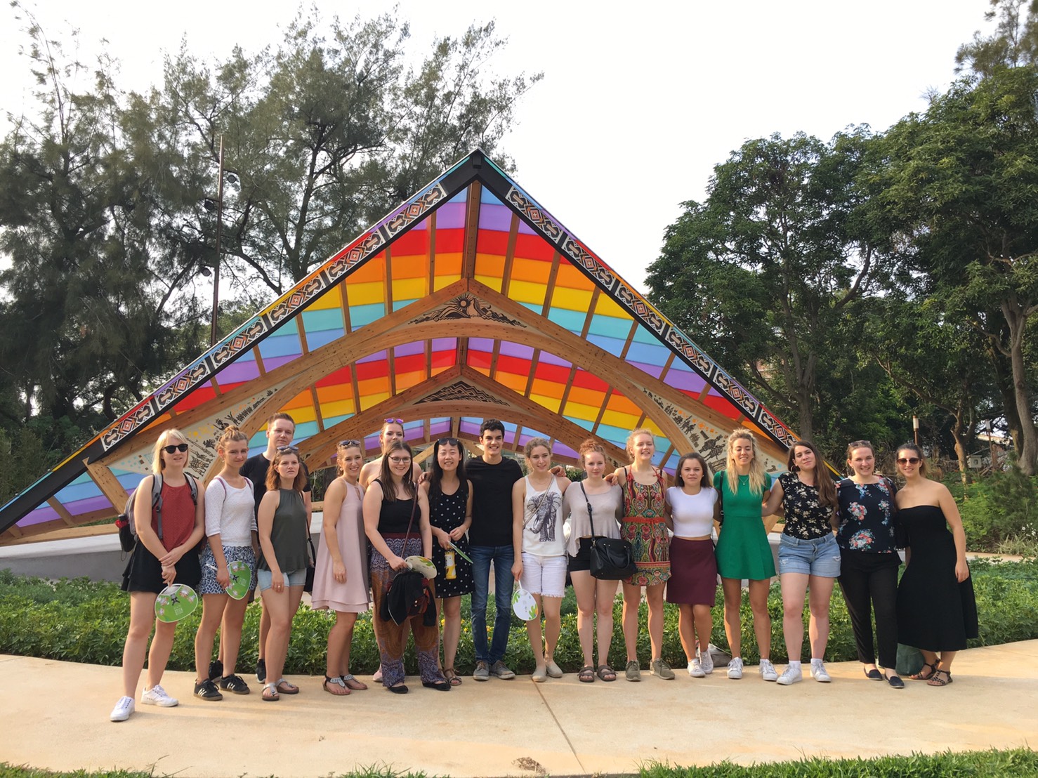 團員們在后里馬場,看見尚在訓練中的馬匹感到十分興奮,紛紛上前拍照。后里馬場自日治時代存續至今,藉由花博機會重塑改造空間,並修復再利用古蹟及歷史建物,園區內的建築呈現具有特色的和洋日式建築風格,團員也對台灣日治時期的歷史相當好奇,圍著導覽人員詢問相關歷史背景。