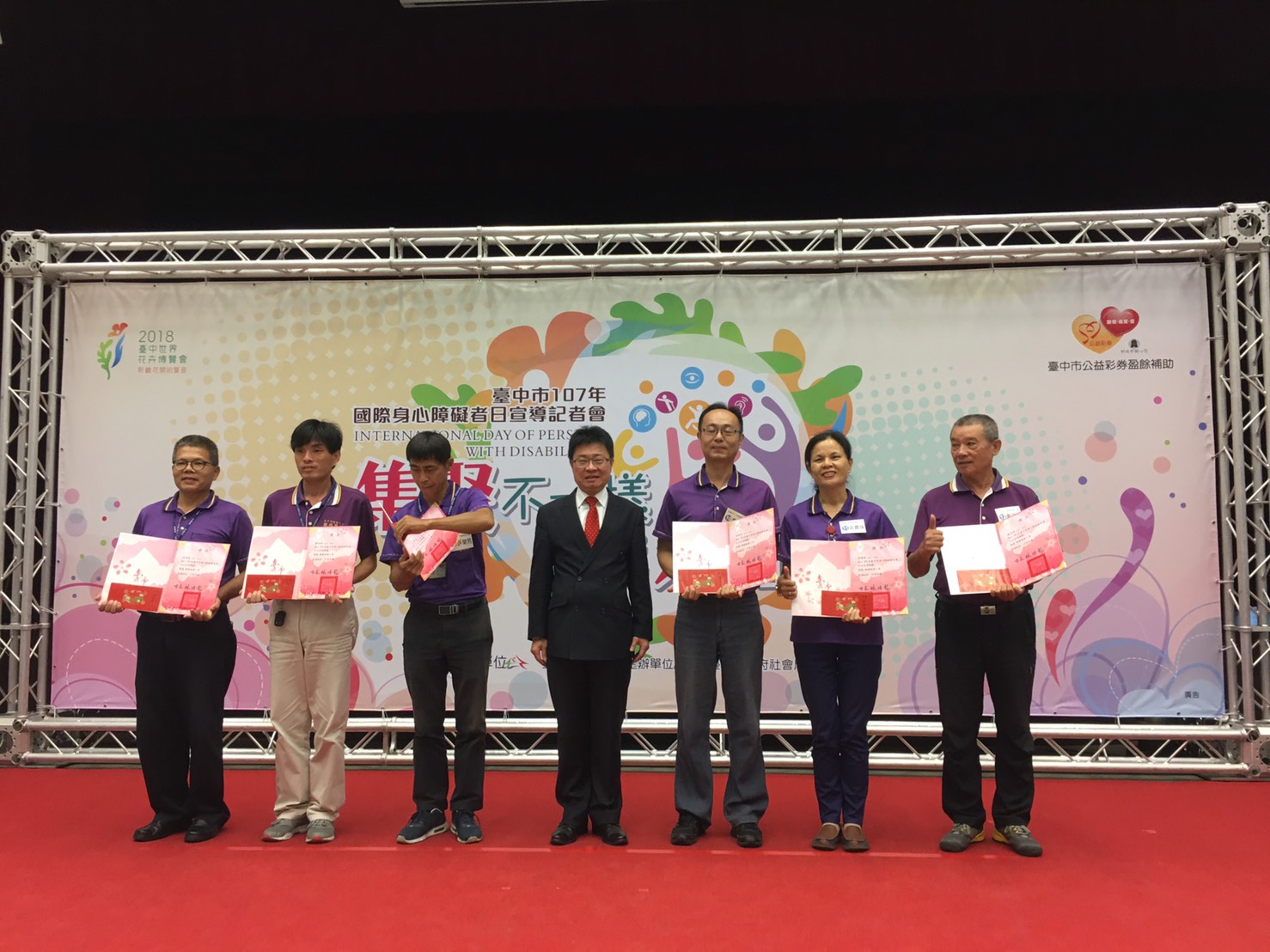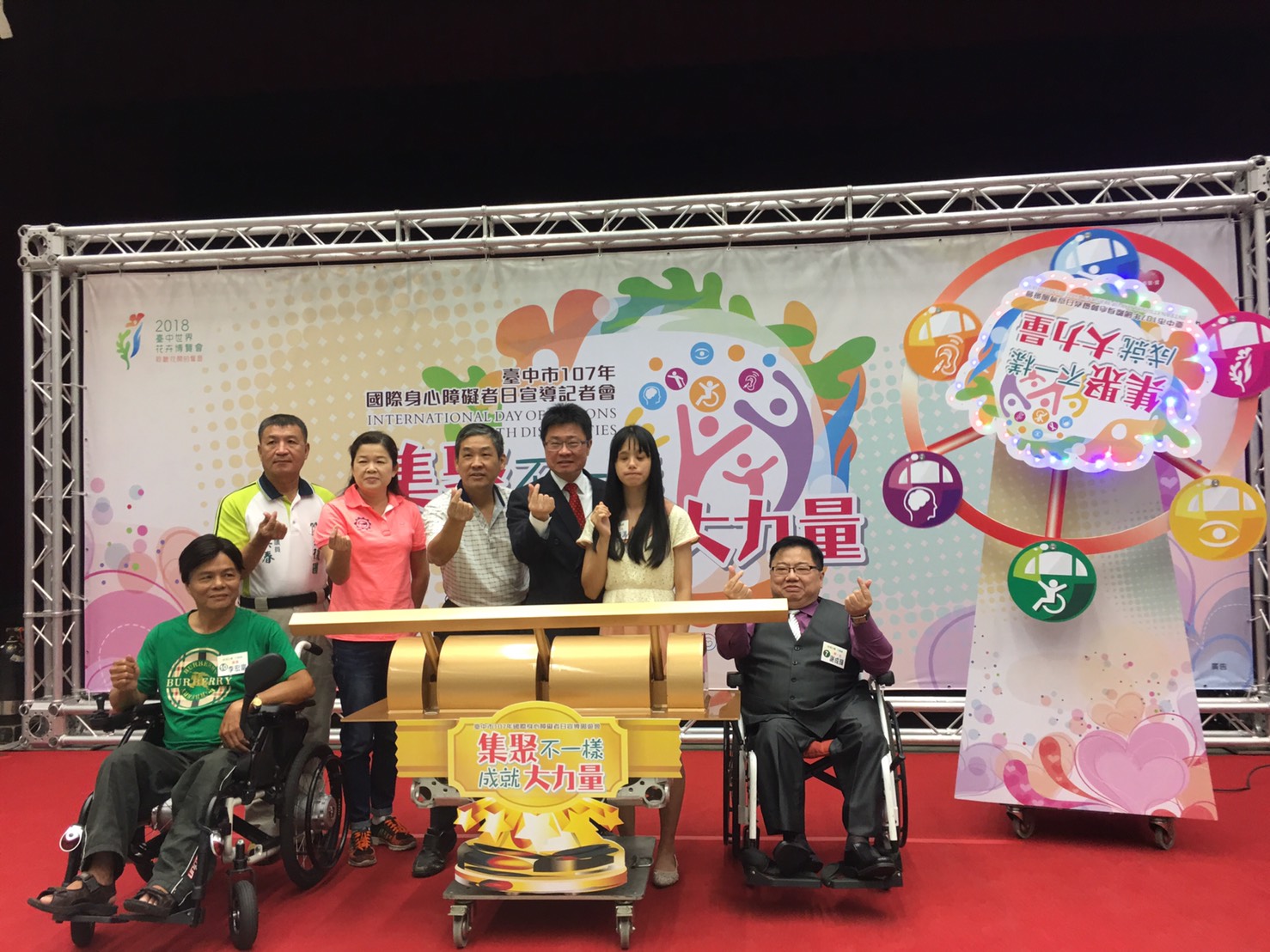 響應「國際身心障礙者日」,台中市政府社會局將於27日於台灣大道市政大樓前廣場舉辦國際身心障礙者日宣導園遊會,今(24)日舉辦宣傳記者會並表揚今年度身障者攝影、海報、歌唱比賽得獎人、績優復康巴士服務人員及復康巴士捐贈者。社會局局長呂建德表示,「集聚不一樣 成就大力量」,歡迎民眾參加國際身心障礙者日宣導園遊會,感受身障朋友的活力與熱情。