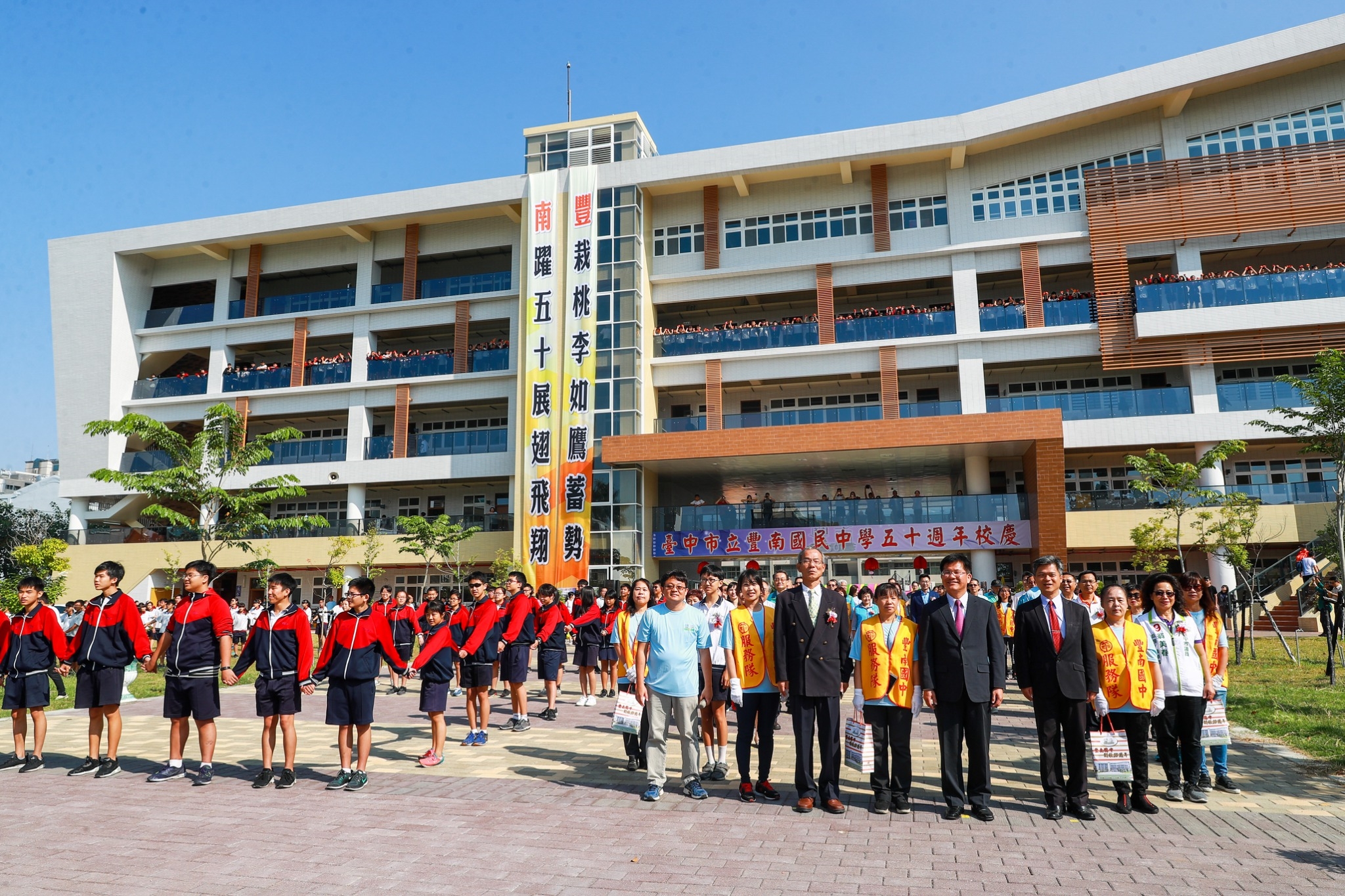 此外,林市長今日也在教育局長彭富源、豐原區長唐益滄的陪同下,前往豐南國中參加50週年校慶暨新大樓落成啟用典禮。包括立法委員江啟臣、市議員翁美春、謝志忠、陳清龍、張瀞分等人均到場共襄盛舉。