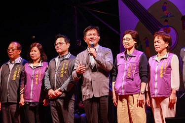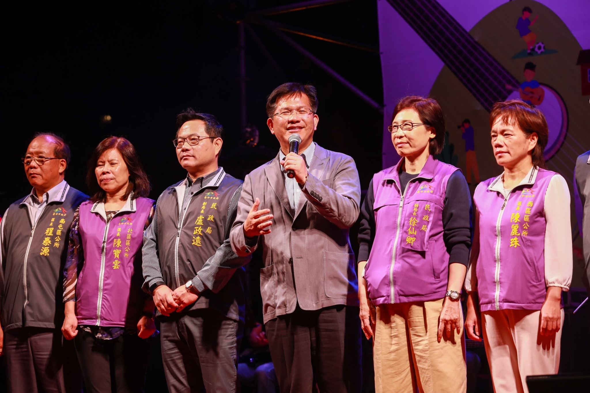 林市長表示,台中公園越來越美麗,日月湖經過大規模清淤整治,也越來越乾淨,還可以划船,希望未來有更多音樂會或表演活動都在台中公園舉辦;今晚在此舉辦民歌演唱會,是為了慶祝明天台中鐵路高架捷運化全線通車,這也是台中史上重要的一天。