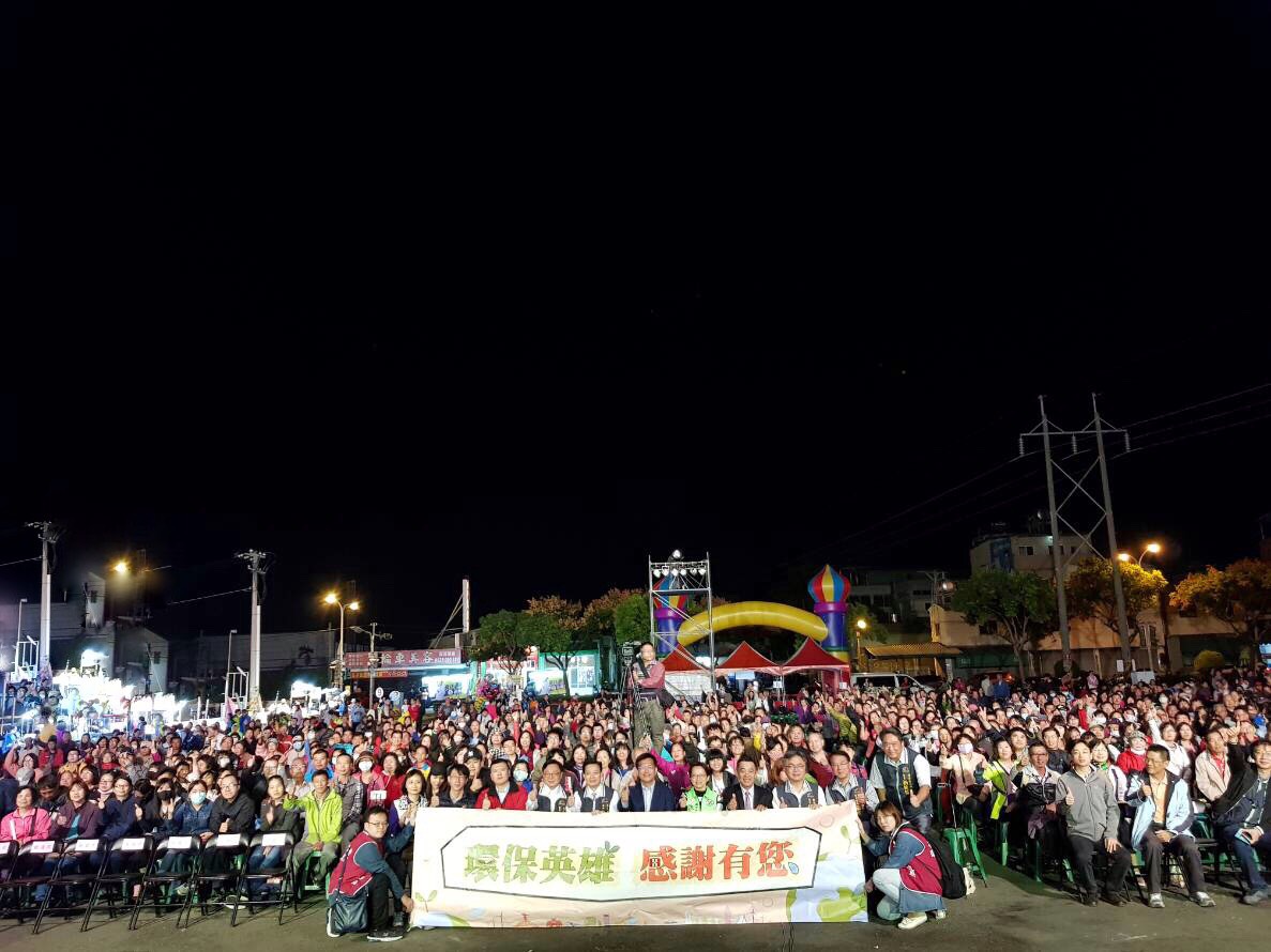 為感謝並慰勞環保志工及清潔隊員的辛苦付出,台中市環境保護局今(28)晚在潭子勝利夜市舉辦「2018花挺(fighting)台中‧感謝有您」音樂會,向辛苦的清潔隊員與環保志工致上崇高的敬意與謝意,市長林佳龍也到場向默默付出的環保英雄致敬。
