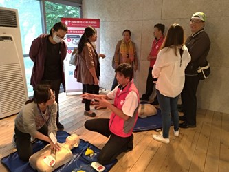 除了有救護硬體設備外,衛生局也教導花博工作人員急救訓練,包括如何正確地使用CPR與AED,除授課外更利用復甦安妮及AED模擬機實地演練,需實際操作通過測試後才能過關,嚴格把關訓練品質,讓園區人員遇有緊急情況時,懂得如何使用AED設備,爭取傷病患的急救黃金時間。