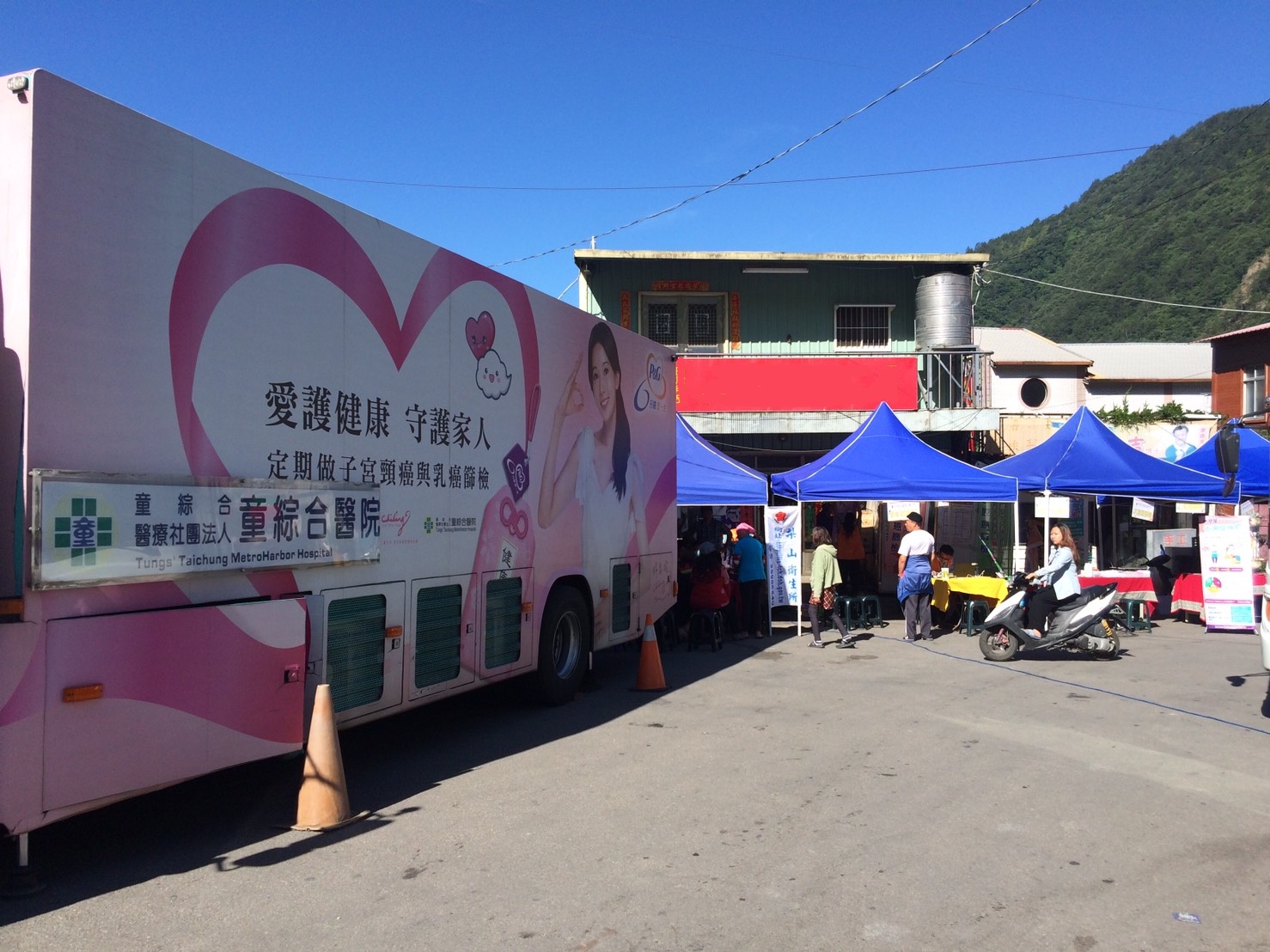 衛生局指出,有鑑於偏遠地區乳房攝影設備不足,衛生局邀請台中市醫療院所至偏鄉提供乳攝車服務,童綜合醫院本著「尊重生命,促進健康」的宗旨,欣然接受邀請,然而台八線臨37中橫便道及台14甲線至梨山禁止甲類大型車通行,該院與交通部高速公路局多次協調,才讓乳攝車經由雪山隧道前往梨山,但仍須行經7小時30分路程,才能抵達海拔2,000公尺的梨山衛生所,停留兩天為婦女提供乳癌篩檢服務。