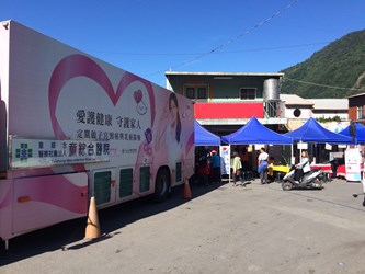 台中市政府衛生局與童綜合醫療社團法人童綜合醫院合作,並協調交通部高速公路局,每年安排2部乳房攝影車行經雪山隧道,開7個半小時抵達海拔2,000公尺的梨山衛生所,提供偏鄉婦女乳癌篩檢服務。市長林佳龍今(1)日前往童綜合醫院頒獎感謝醫護人員不辭辛勞為偏鄉提供醫療服務,也期待繼續延伸服務觸角,縮短城鄉醫療資源差距。