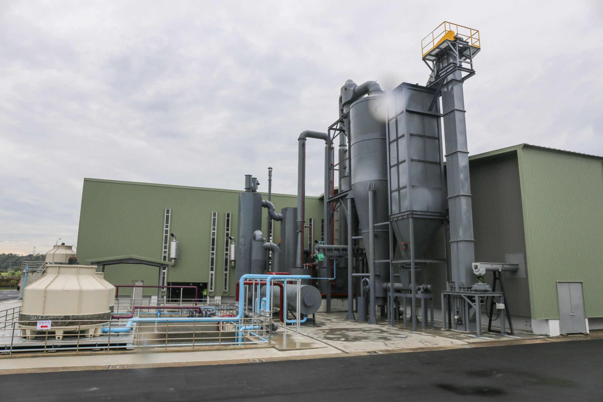 園區內來自德國的沼氣發電機組,電能來源是廚餘發酵純化後的沼氣經燃燒轉化而成,每小時最大發電效益可高達550至660千瓦,發電時所產生的高溫煙氣及熱水,都可回收再使用,提供園區廚餘厭氧系統加溫或沼渣乾燥。此外,沼氣發電機採用集裝箱「靜音式」,降低運轉時所產生的噪音,符合環保需求;花博期間以及展期結束後的花卉殘渣、稻稈等農業資材也將回收至廠內,進行氣化發電。
