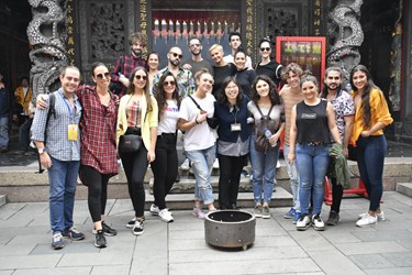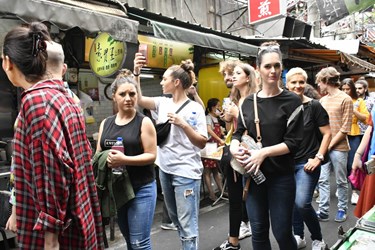 團員第一次逛廟東,非常興奮,從菱角酥、清水排骨麵、蚵仔煎,大快朵頤體驗台式美食,直說「讚」,攤商、民眾也熱情介紹,台灣的濃濃人情味讓他們很感動。