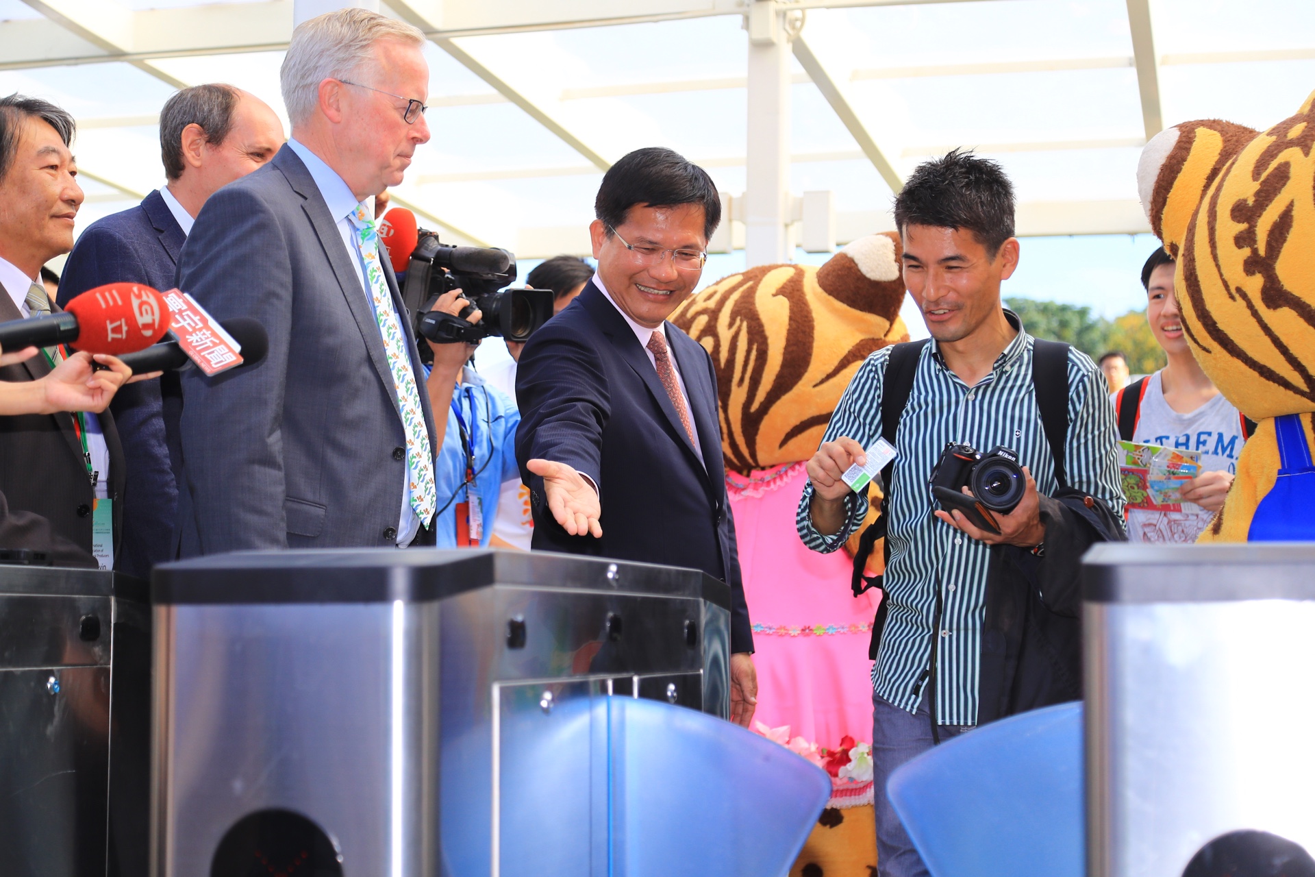 台中花博盛大開幕 林市長擊掌歡迎首批遊客