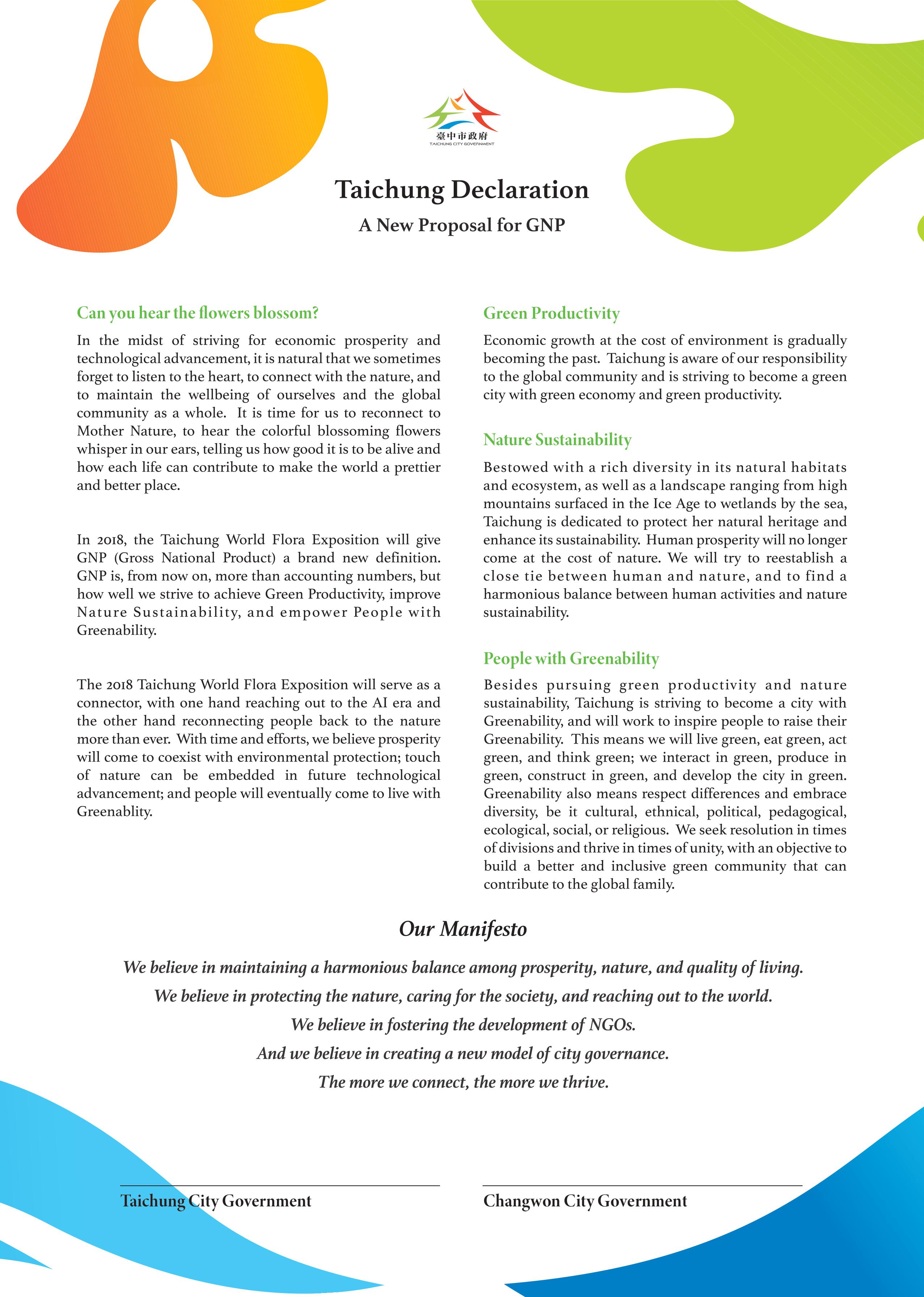 《台中宣言》傳遞花博理念 樹立未來花博舉辦城市典範