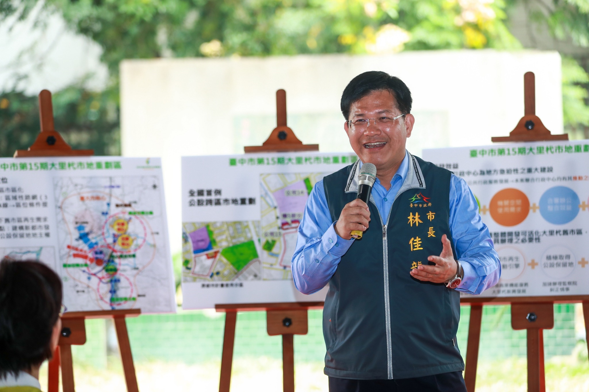 地政局說明,第15期大里杙市地重劃區範圍內的公1用地經多次都市計畫檢討,皆維持公園用地規劃,但徵收經費龐大遲遲未開發,影響地方發展及民眾需求開發期程。林市長上任以「屯區市區化」調整大里整體規劃,結合公1、因921地震結構受損的大里區公所及周邊同樣未開發的公兒14、公兒15,以合併辦理公辦市地重劃方式,爭取都市計畫變更,並順利通過內政部的核准,啟動開發作業。