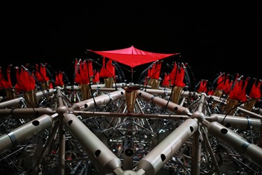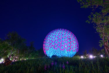 花博發言人黃意涵表示,后里森林園區「聆聽花開的聲音」巨型機械動力花球,直徑15公尺,由台北世大運聖火裝置藝術團隊「豪華朗機工」設計,並與12個在地單位共創,以花的生命力及繽紛綻放的姿態為概念發想,會模擬植物、動物的姿態,並根據日照、風向等環境變化,同時也加入群眾參數,進行千變萬化的演繹、搖擺;陽光方向改變,花朵也如向日葵般跟著陽光移動;而與觀眾互動時,裝置更將化身為一株株含羞草,在人群聚集時含羞蜷起。相當具有特色。