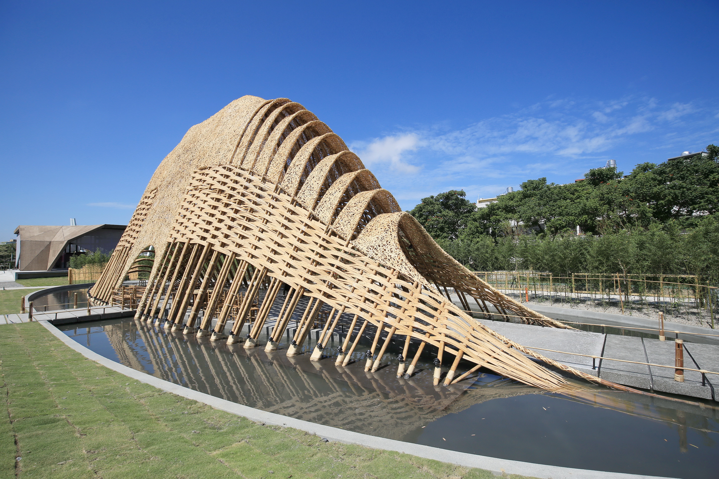 還有高10公尺的豐原葫蘆墩公園「竹跡館」,是全台最大竹建築,它以竹子打造中央山脈的意象,曾入圍有建築奧斯卡之稱的「WAF世界建築獎」。而座落於外埔園區,全長約19公尺、最高5公尺的「石虎花車」則是106年國慶票選全台人氣第一的冠軍花車,也是園區的入口意象。(11/8*7)*新聞局