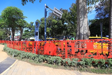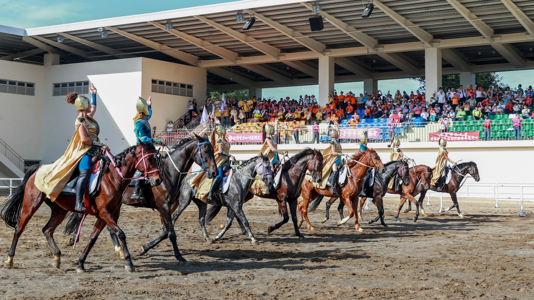 另外,身兼導演及剪紙藝術家的楊士毅在后里馬場園區「花舞館」戶外打造全台最長240公尺、薄度僅0.2公分的紅色鐵雕剪紙藝術,結合新式剪紙創作,以等高線代表大地,樹木、石虎、台灣黑熊等台灣原生動植物圖樣結合孩子的童言話語,呈現人與自然的美好意象。而斥資2.2億元,長110公尺、寬70公尺,可容納1000位觀眾的馬術競技場,則是全台最大、符合國際標準規格的競技場,也坐落在馬場園區內。