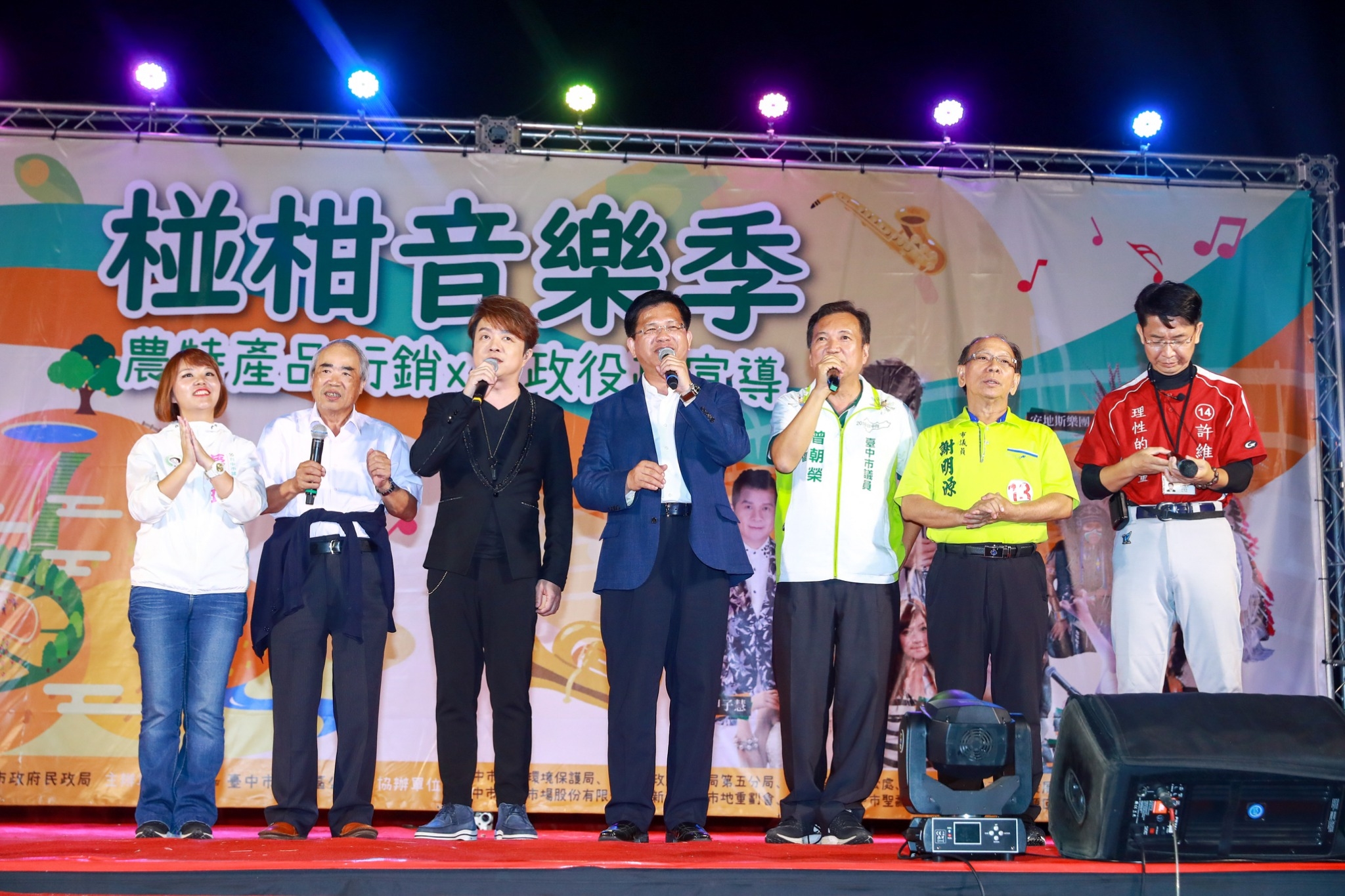 椪柑為台中市重要農產品,台中市政府農業局今(10)日在北屯新都生態公園舉行「107年台中市椪柑行銷嘉年華」,規劃小農市集、農特產展售、試吃體驗,更邀請歌手翁立友、傅振輝等人與民眾同樂,吸引眾多人潮。市長林佳龍晚間也出席嘉年華,並與翁立友、現場民眾合唱《堅持》同樂,場面熱鬧。