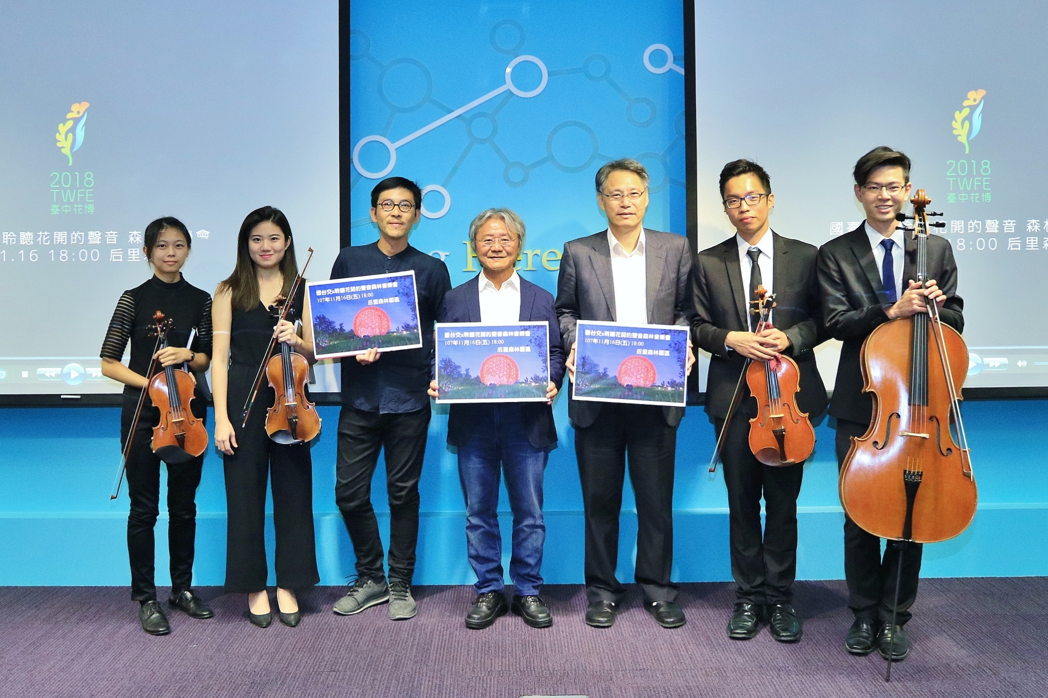文化局今(13)日在台灣大道市政大樓舉辦「國立台灣交響樂團 × 聆聽花開的聲音森林音樂會」宣傳記者會,包括文化局長王志誠、國立台灣交響樂團團長劉玄詠、豪華朗機工創意總監兼動態導演林昆穎等人都出席,國台交弦樂四重奏也現場演奏〈女人香〉、〈四季紅〉曲目。