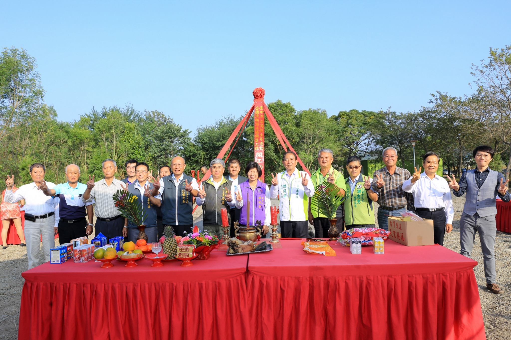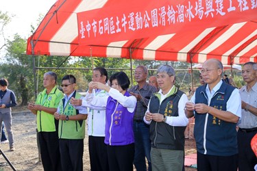 今日土牛運動公園滑輪溜冰場動土典禮由林副市長主持,包括運動局長王慶堂、客家事務委員會主委劉宏基、石岡區長高文生、市議員蔡成圭、謝志忠及在地多位里長、里民皆到場見證。