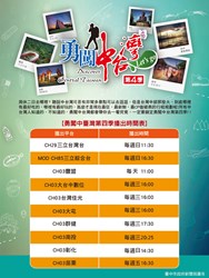 旅遊節目「勇闖中台灣」介紹中台灣私房景點,廣受觀眾喜愛,也帶動更多人到中部旅遊觀光;全新一季的節目將於11月18日起在三立台灣台 (CH29)首播,主持群也加入卜學亮等人,除持續走訪台中的特色景點,也將介紹更多彰化、南投、苗栗等地的私房美食,呈現不一樣的中台灣風情。11月18日上午11時30分起在三立台灣台 (CH29)首播,並於三立綜合台、三立國際台等平台播出,Vidol、三立新聞網等網路平台播送,11月18日起在中彰投苗各有線電視公用頻道(CH3)播出,詳細播出時間可至市府新聞局網站(http://bit.ly/2QDSHwV)查詢。更多資訊,請見「中市週末活動看板1117_1118」。