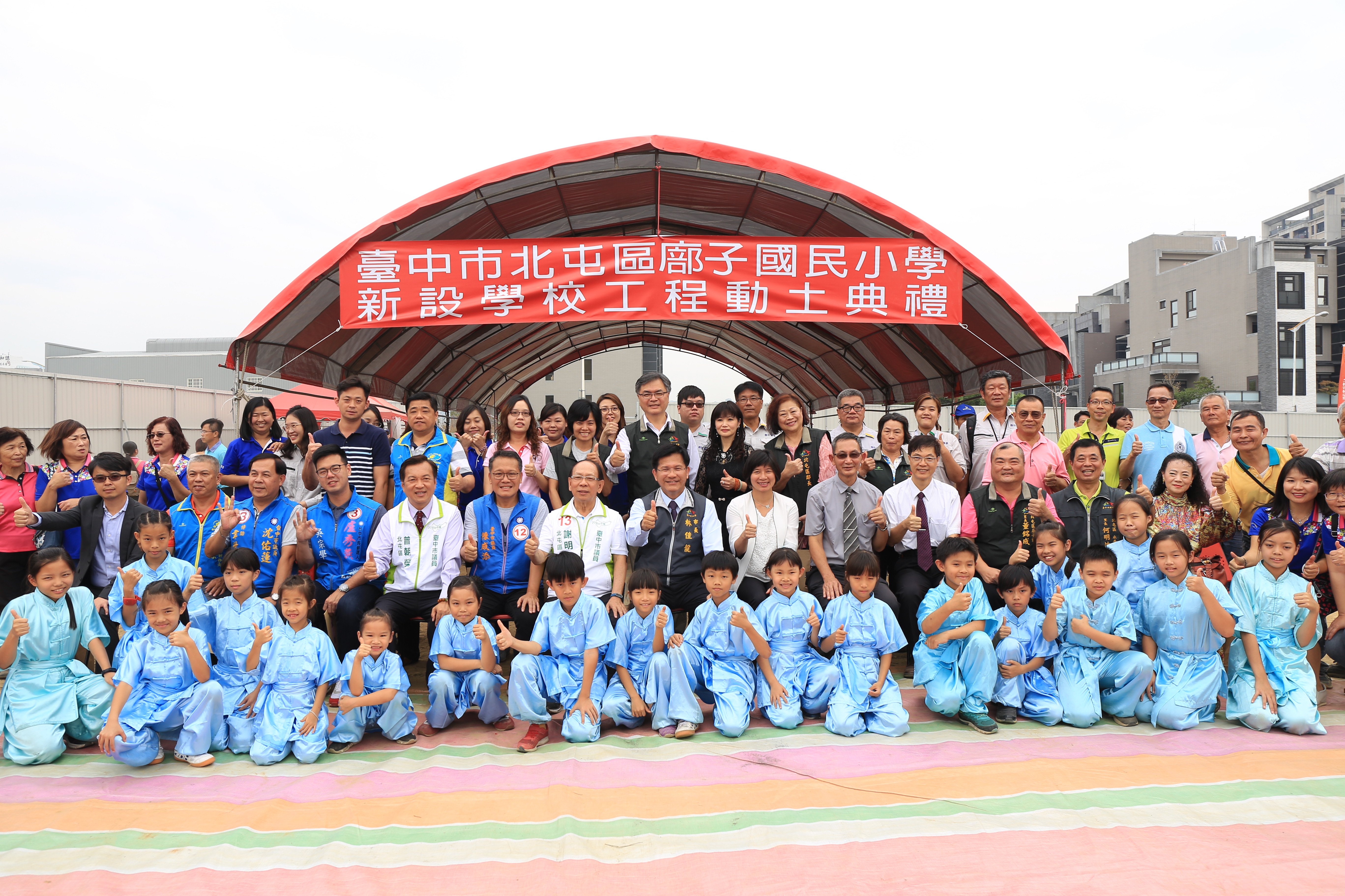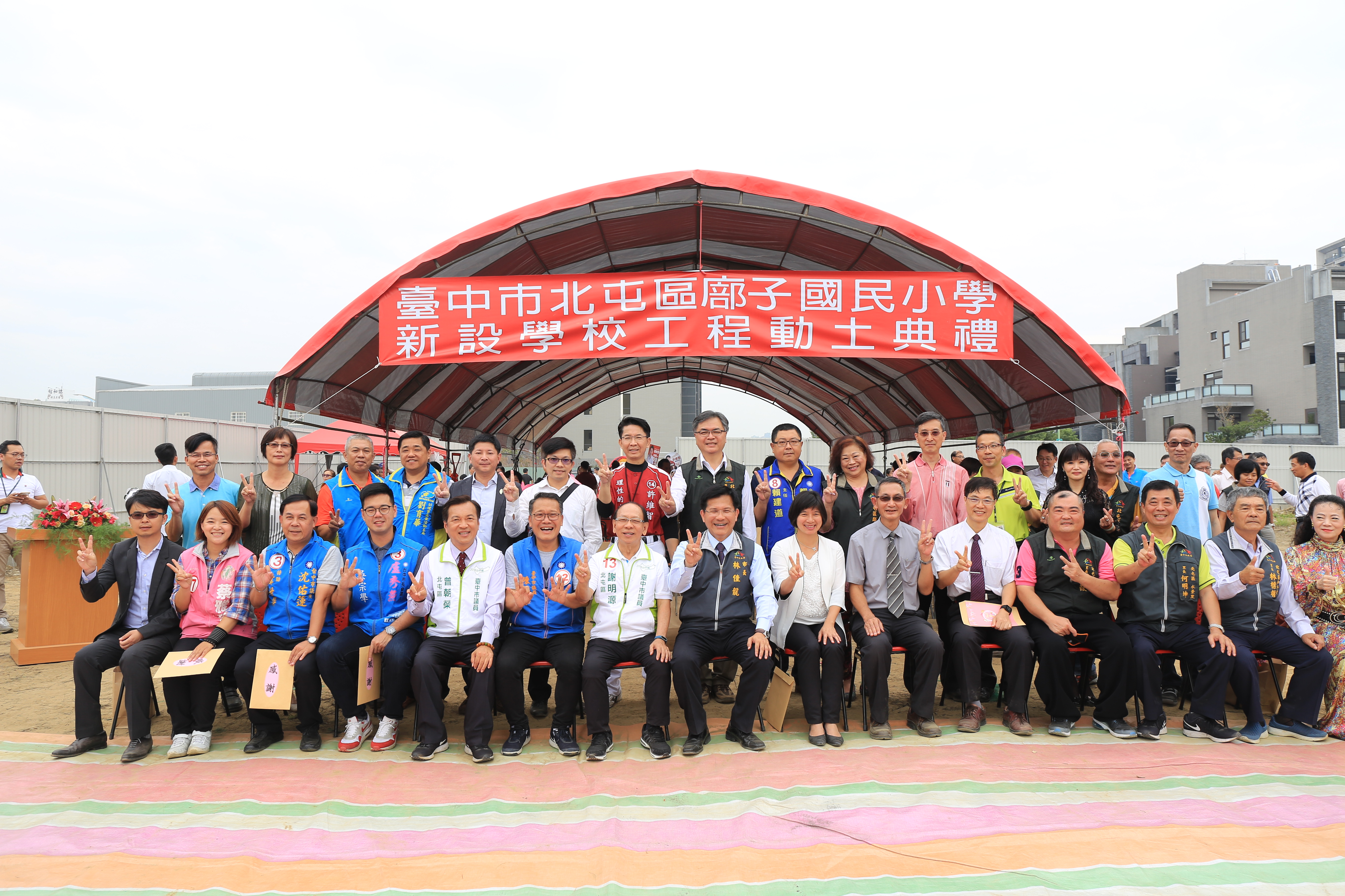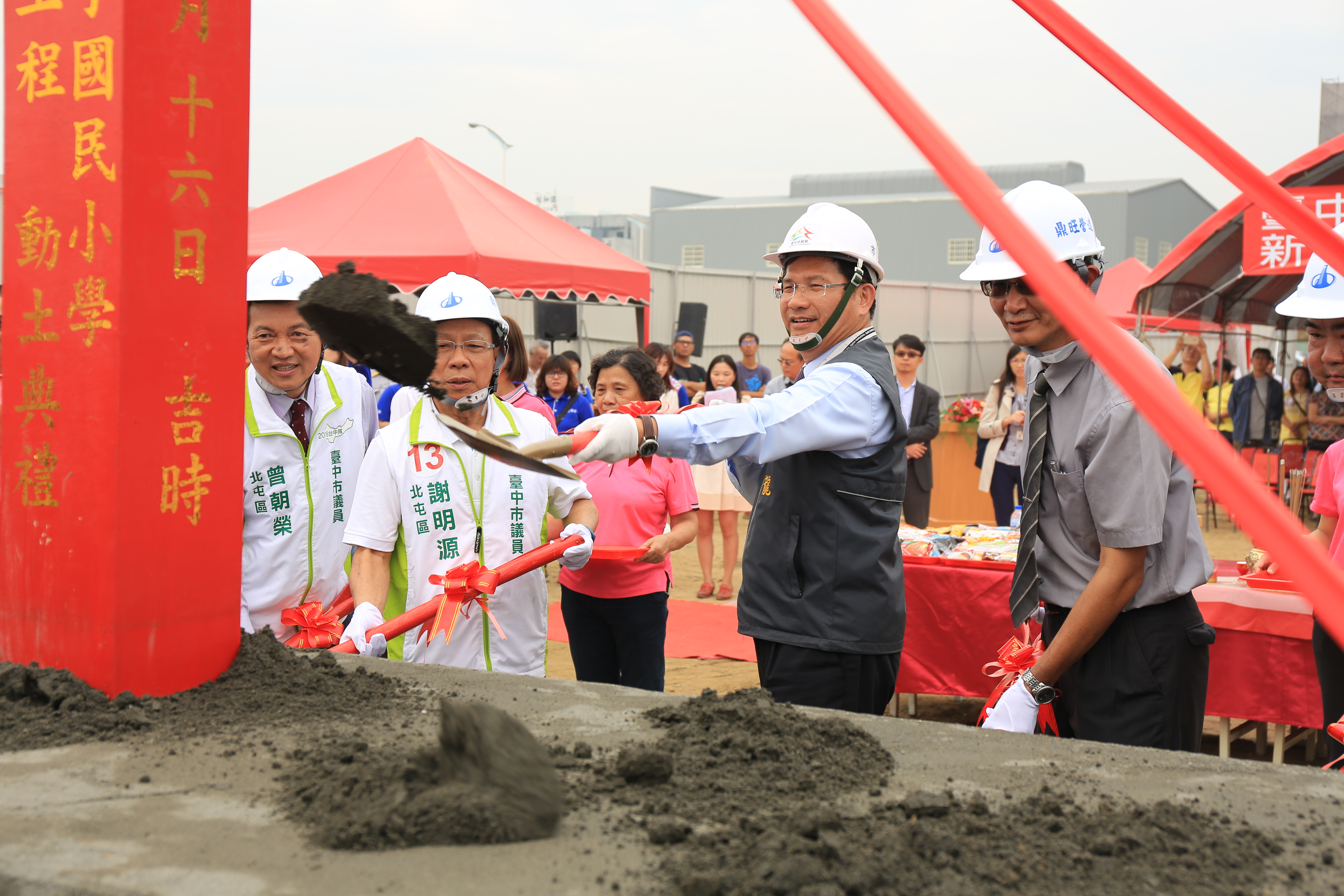 市府教育局今(16)日於北屯舉辦廍子國小新建校舍動土典禮,林市長在副市長林依瑩、北屯區長林啟正、教育局代表及廍子國小校長張榮林的陪同下出席,包括市議員曾朝榮、謝明源、陳成添均到場,市議員蔡雅玲、沈佑蓮等人也派代表關心,眾人共同為工程祈福。
