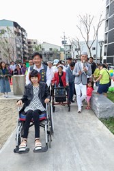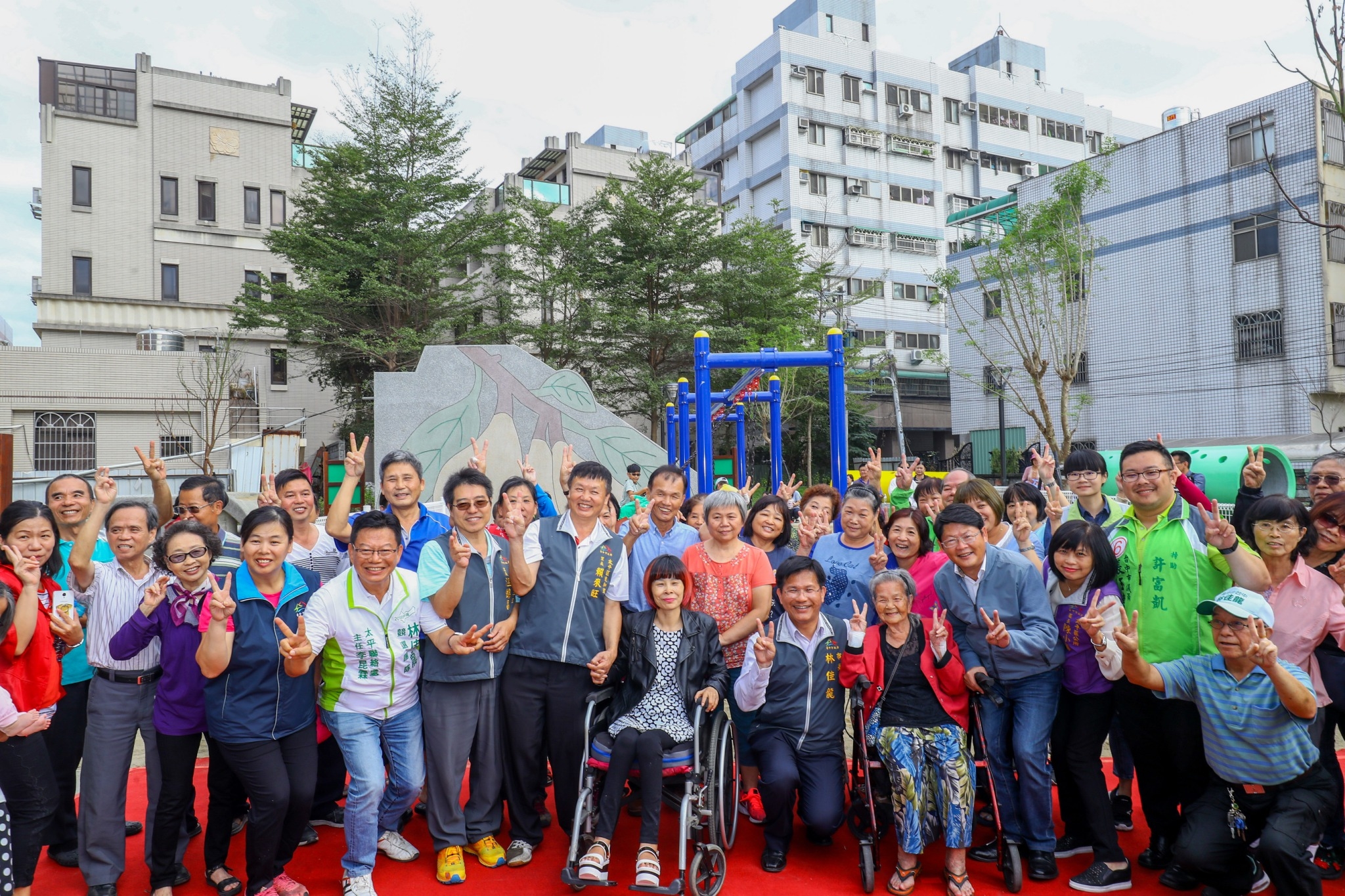 「打造宜居城市,公園是相當重要的生活空間!」林市長表示,今日不僅是太平兒一公園完工,鄰近巷道打通工程也一併啟用,讓更多居住附近的市民都能享用這片綠地;公園以親子共融、老少同樂為設計方向,規劃小小孩也能玩樂的鞦韆、磨石子溜滑梯,以及無障礙坡道等,讓不分老少都能共享空間玩樂。