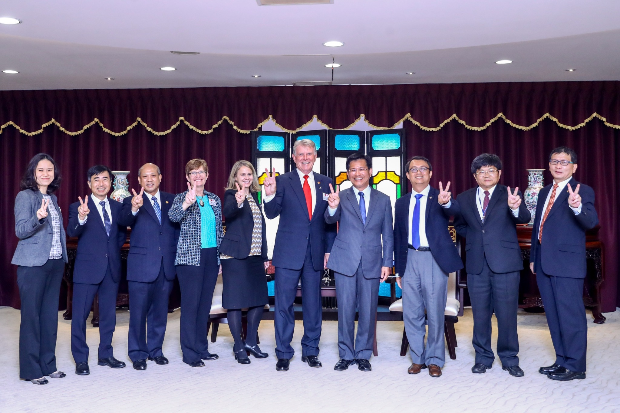 美國愛達荷州長歐士傑今(20)日率領愛州商務廳長苗喬恩(Bobbi-Jo Meuleman)、農業廳長顧雅莉(Celia Gould)、愛州亞太區辦事處長顏銀德(Eddie Yen)等人,在台灣美光公司董事長徐國晉、台灣美光公司總監廖尉君、美福國際公司董事長李冠霆及外交部西雅圖辦事處副組長史書蕙等人陪同下,與林市長、經發局長呂曜志見面,雙方針對農業、製造業及教育等議題廣泛交換意見。
