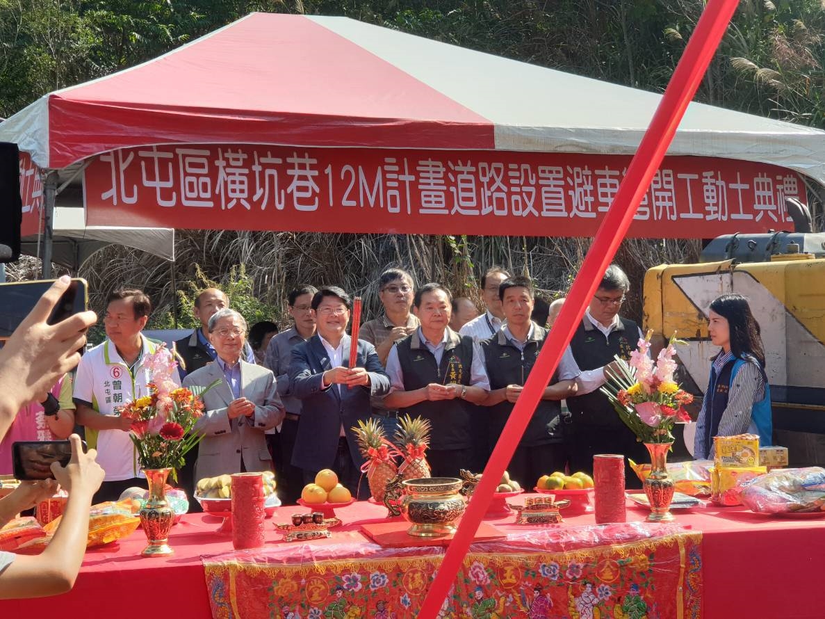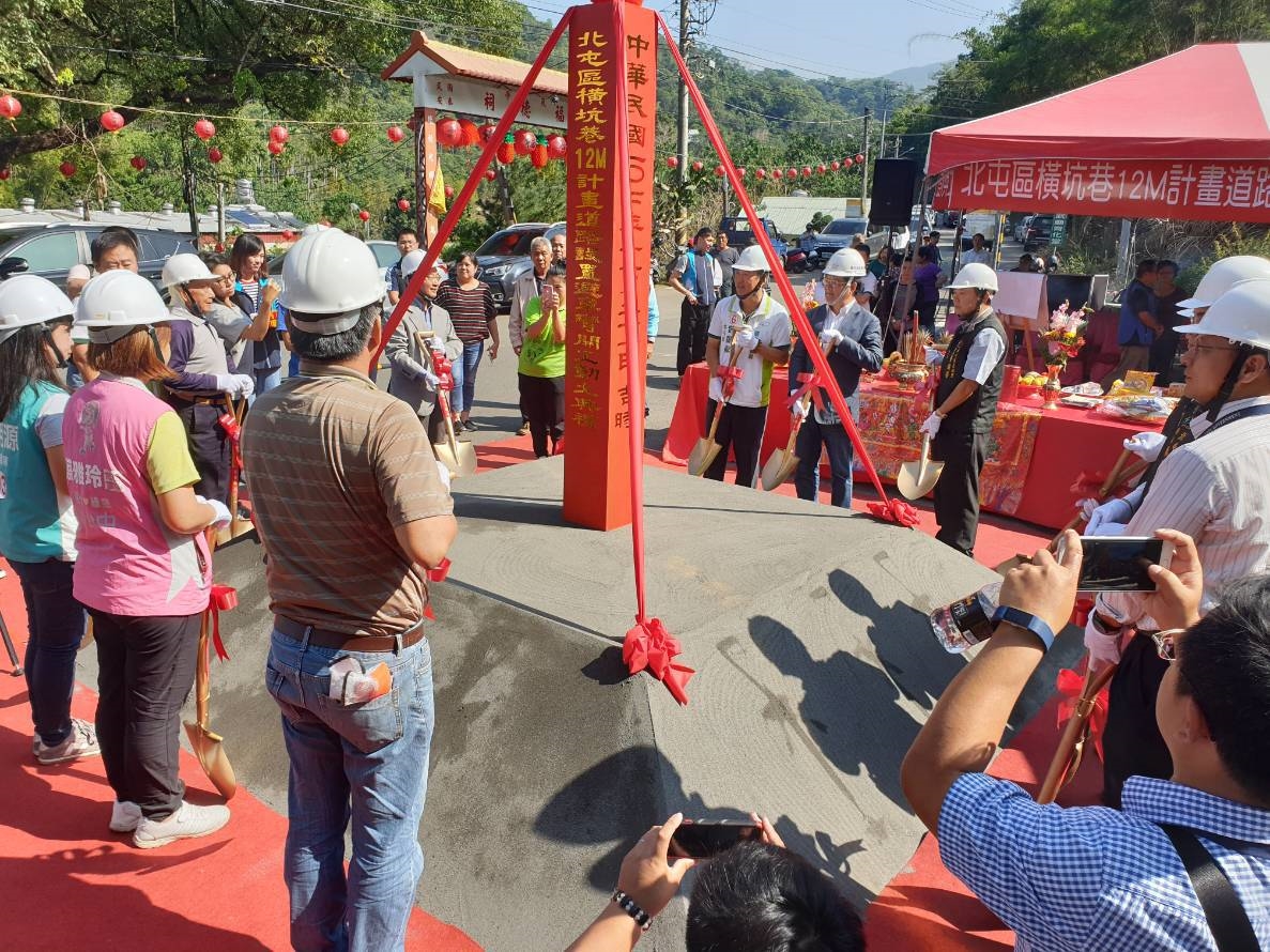 市府建設局今(21)日舉辦「北屯區橫坑巷12米計畫道路設置避車彎」開工動土典禮,由建設局長黃玉霖主持,與眾人共同祈福,期盼工程順利圓滿完工。
