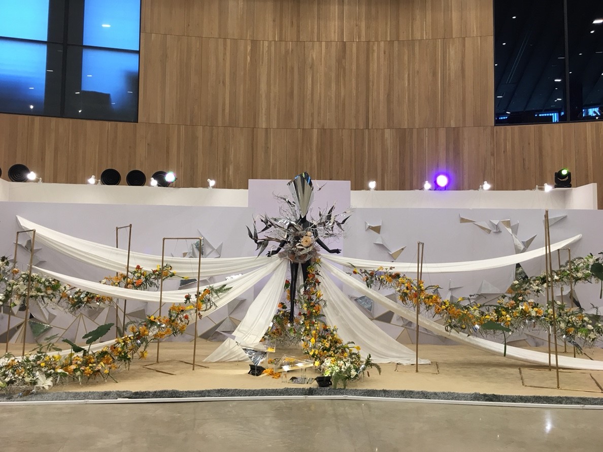 台中市政府教育局於花博后里馬場園區「花舞館」內競賽館規劃展出多檔次短期花卉競賽,首波競賽「國際室內花卉競賽」廣受好評,落幕後由「人體花飾設計大賽」於11月23日接棒展出,共邀集17個國內基金會丶協會丶公司及個人單位,以創意設計讓花卉就像珠寶、衣服一樣妝點人身,展現不同的風采樣貌。