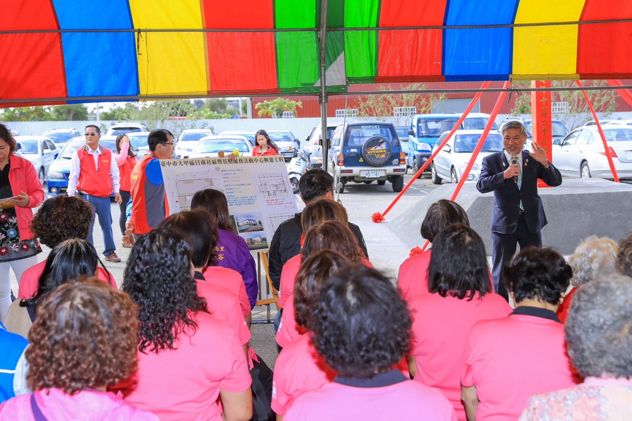 大甲區日南社區暨長照服務活動中心興建案,日前獲得中央前瞻基礎建設計畫支持補助2,000萬元,今(22)日舉行動土典禮,預計108年底完工,中心將可容納近300人,內部規劃2層樓,1樓作為B級小規模、多機能長照據點及社區守望相助隊部使用,2樓為社區活動中心及關懷據點,成為台中第一個整合型社區照護中心,讓社區長輩獲得最好的照顧,健康快樂的生活。