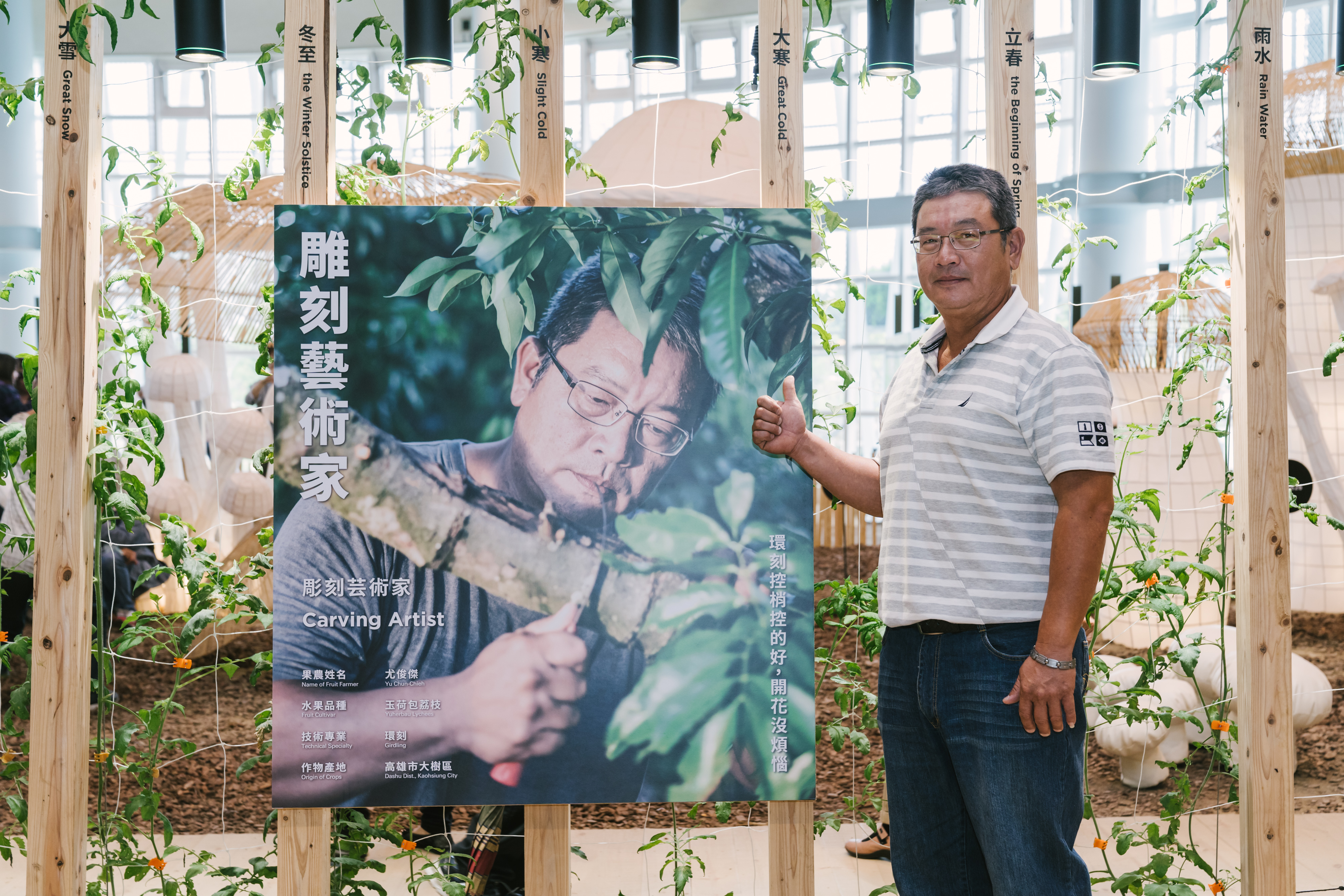 總策展人龔書章更指出,他是名建築師,對農業一竅不通,此次多虧來自各個地方的農民參與,有了農民對於農業的智慧和熱情,展覽才能如此成功。他也感謝農業局的支持,讓「全區覆土」這樣大膽的做法得以實現,在館內讓作物真實地生長,呈現『稻、果、菇、茶』四類台灣最寶貴的作物。