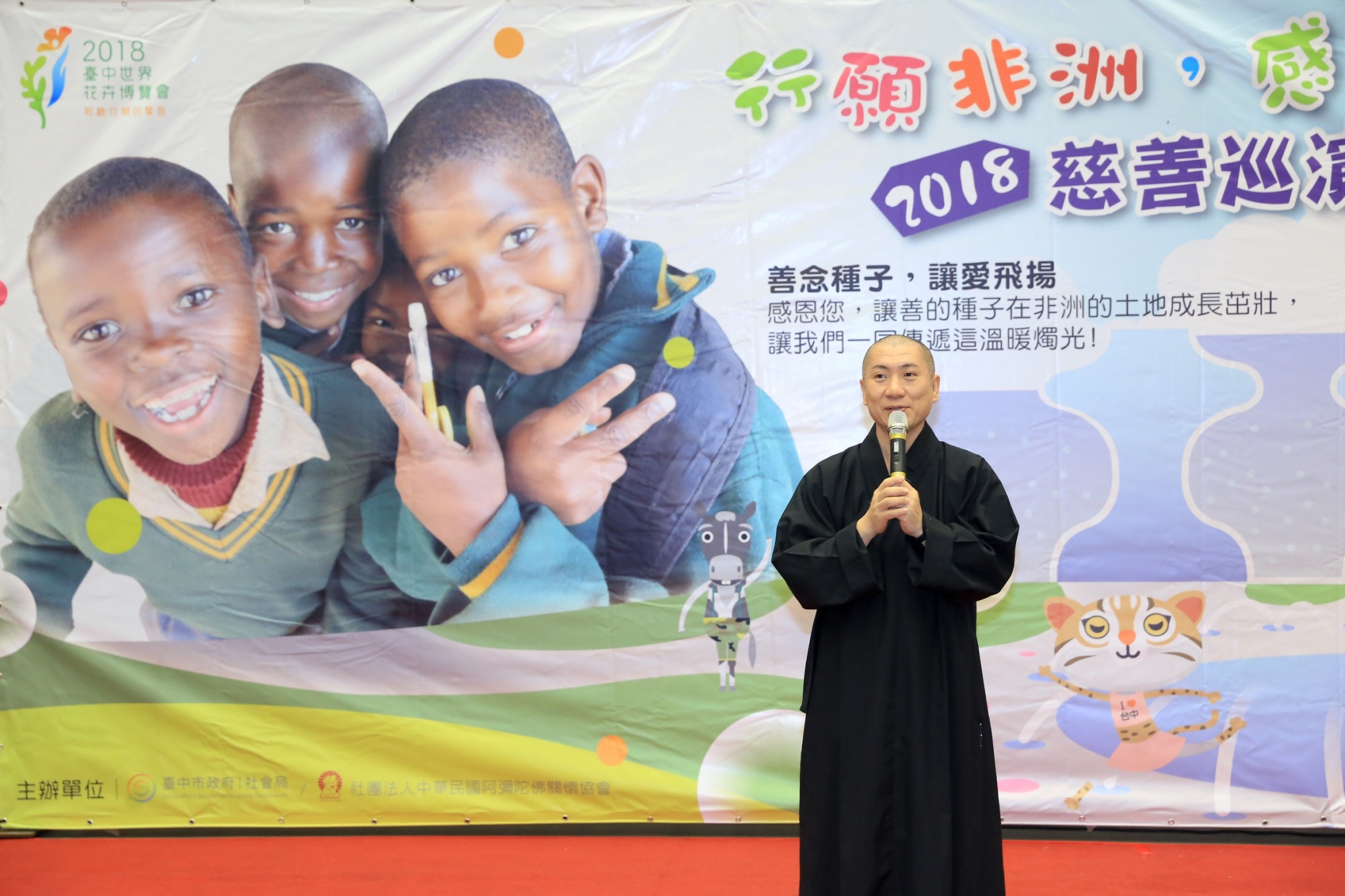 台灣慧禮法師所發起的「阿彌陀佛關懷中心」(簡稱ACC),在非洲馬拉威、賴索托、史瓦濟蘭等國家已助養超過千名孤兒。為表達對台灣愛心民眾的感謝,25名遠從非洲賴索托前來的ACC院童展開「2018行願非洲‧感恩之旅」,這趟慈善巡演巡迴全台7個縣市,其中12月16日將在台中的中興大學惠蓀堂帶來短劇、童謠、武術等精采表演。副市長林依瑩今(29)日邀請大家踴躍前往欣賞,共同響應愛心公益。