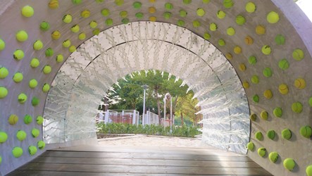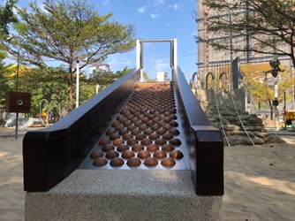 此外,「迷宮探索」則可整合思考、記憶、方向感等能力,從金屬格網圍塑的空間裡,隱約看到出口的方向,迷宮中再加入金屬風鈴、竹筒門簾、彩色圓珠牆等設施,讓探尋出路的過程更加有趣。