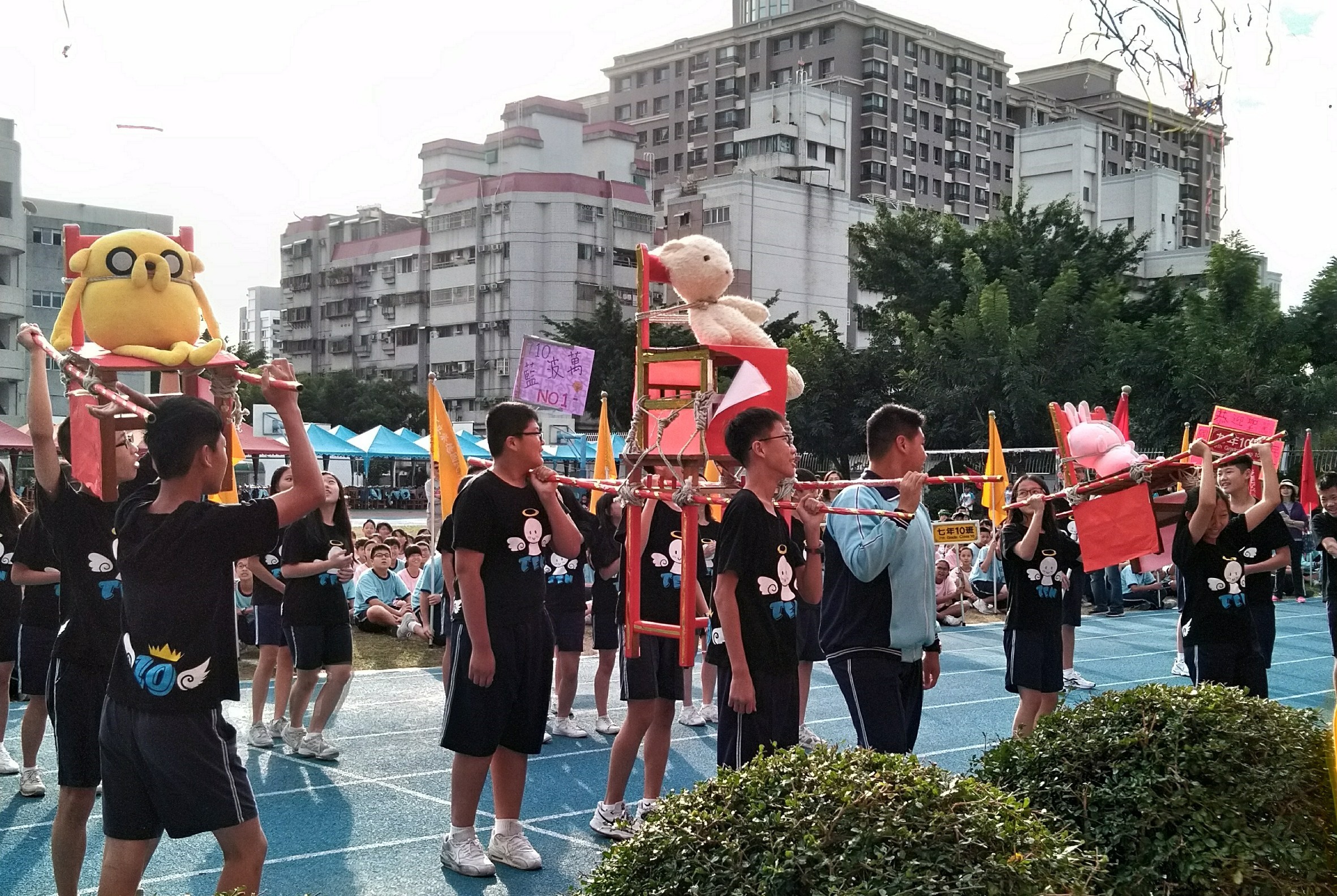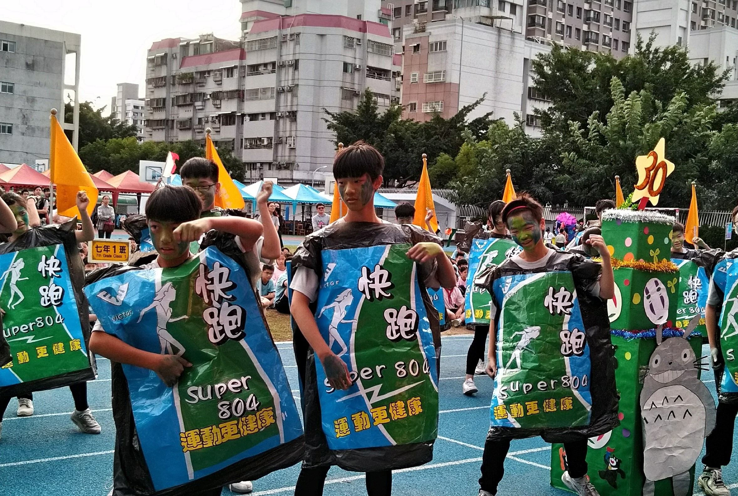 豐原高中校慶由全校各班創意遊行活動進場揭開序幕,學生們用心裝扮自己,個個表現出班級特色。除了校慶運動會外,明(8)日也將舉行愛心園遊會,內容多元活潑,希望讓學生從籌辦園遊會攤位的過程中,透過動手做、團體合作學習。