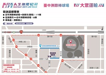 「五月天2019《人生無限公司》無限放大最終回」將於12月22日起,在台中洲際棒球場展開10場演唱會,市府規劃4條免費市區接駁車服務廣大歌迷前往現場,並在洲際棒球場附近管制並規劃停車空間,同時協調台中市公車業者加開班次及延後收班,協助歌迷順利到場及離場,享受美好的觀賞經驗。