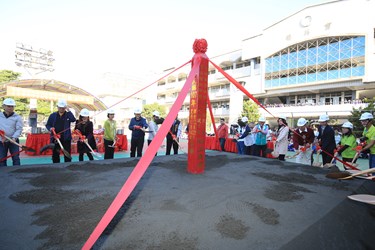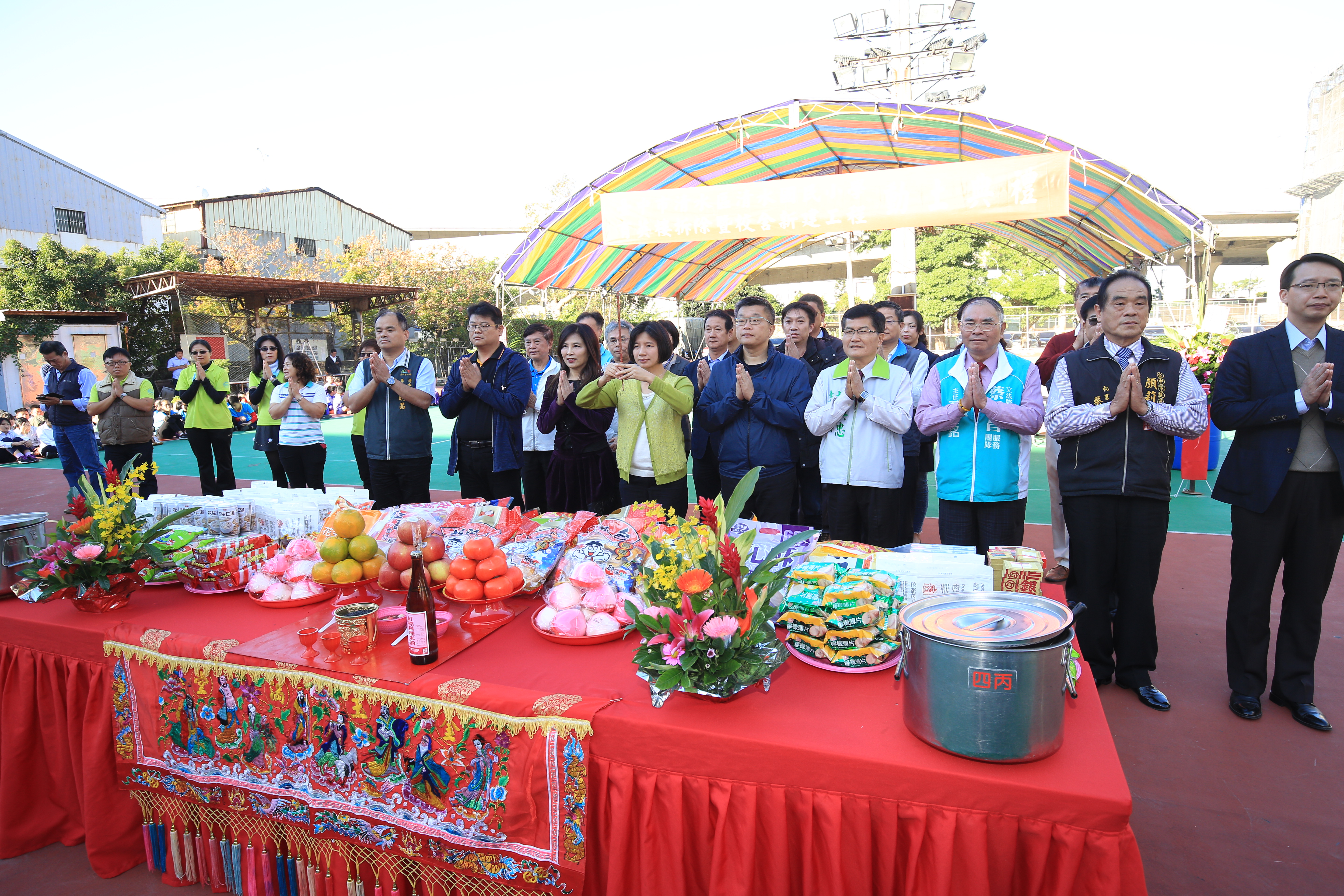今日動土儀式由副市長林依瑩主持,身為清水國小校友的立法院副院長蔡其昌、市議員楊典忠等人也到場見證,共同祈求工程順利。