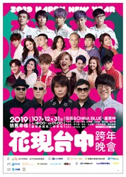 2019台中市跨年晚會雙主場,分別在后里現場麗寶樂園第二停車場舉辦「2019依舊幸福 花現台中跨年晚會」,及台中現場圓滿戶外劇場暨文心森林公園舉辦「搖滾台中 2019台中跨年音樂祭」。后里現場周邊道路將實施交通管制,后里現場安排4條接駁車路線、140輛遊覽車接駁;行經台中現場的周邊路線公車及優化公車專用道部分公車路線則延後收班,並安排夜間公車行駛,呼籲多利用大眾運輸前往,避免壅塞。