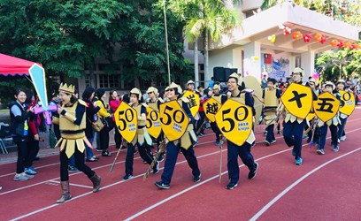 今日光明國中50週年校慶,由舞蹈班學生表演揭開序幕,接續登場的學生創意進場,各班融合班級特色及學校意象發揮想像力,運用環保素材裝扮成各式造型,展現活潑創意的精神;歷屆校友及退休師長也受邀返校,共同見證學校50年璀燦歲月。