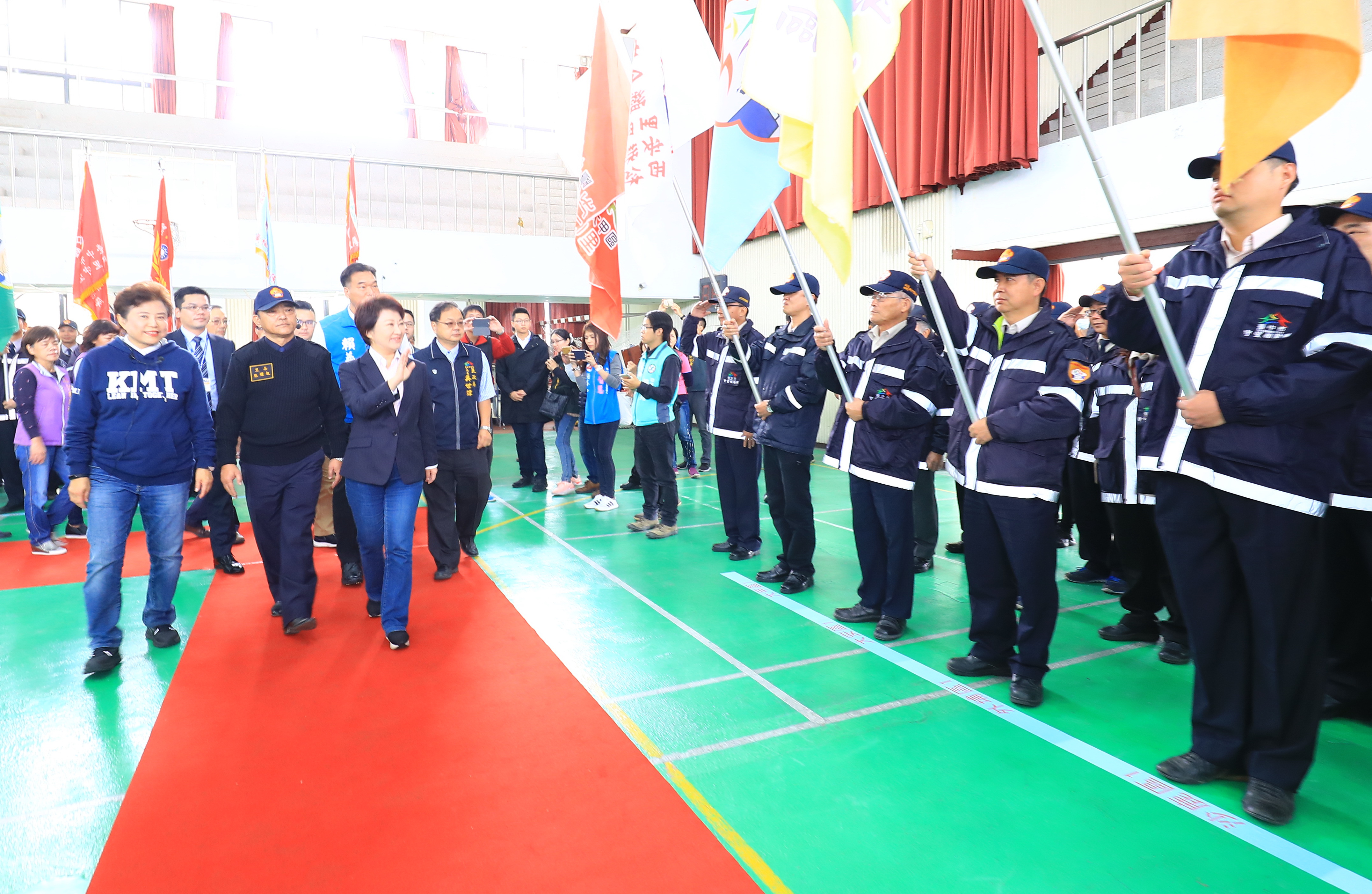 市府民政局今日在北屯區崇德國中舉辦「台中市108年里守望相助隊誓師大會」,盧市長在民政局長吳世瑋、新聞局長吳皇昇的陪同下出席,親自校閱各區里守望相助隊代表,隊員們個個精神抖擻、士氣高昂;包括市議員賴義鍠、陳政顯及黃健豪等人均到場關心。