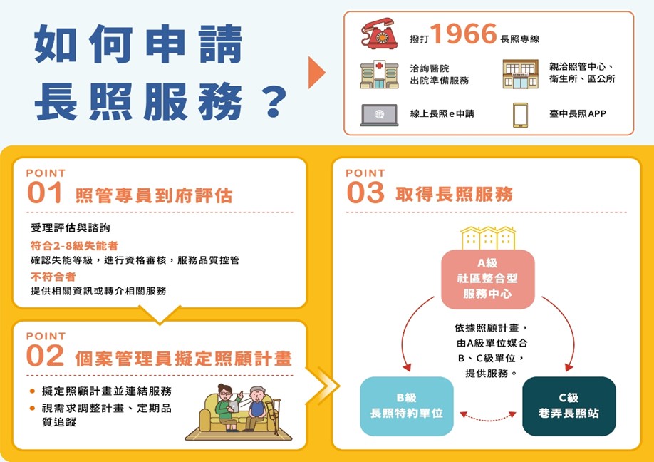 衛生局指出,市民若有春節期間的長照服務需求,請務必提前預約,並於115年2月9日(星期一)前撥打1966長照專線,向台中市長期照顧管理中心提出申請,即有專人協助評估與安排相關服務,包括居家照顧、日間照顧、家庭托顧、專業服務、輔具及居家無障礙環境改善、交通接送及喘息服務等,讓照顧安排更順利。
