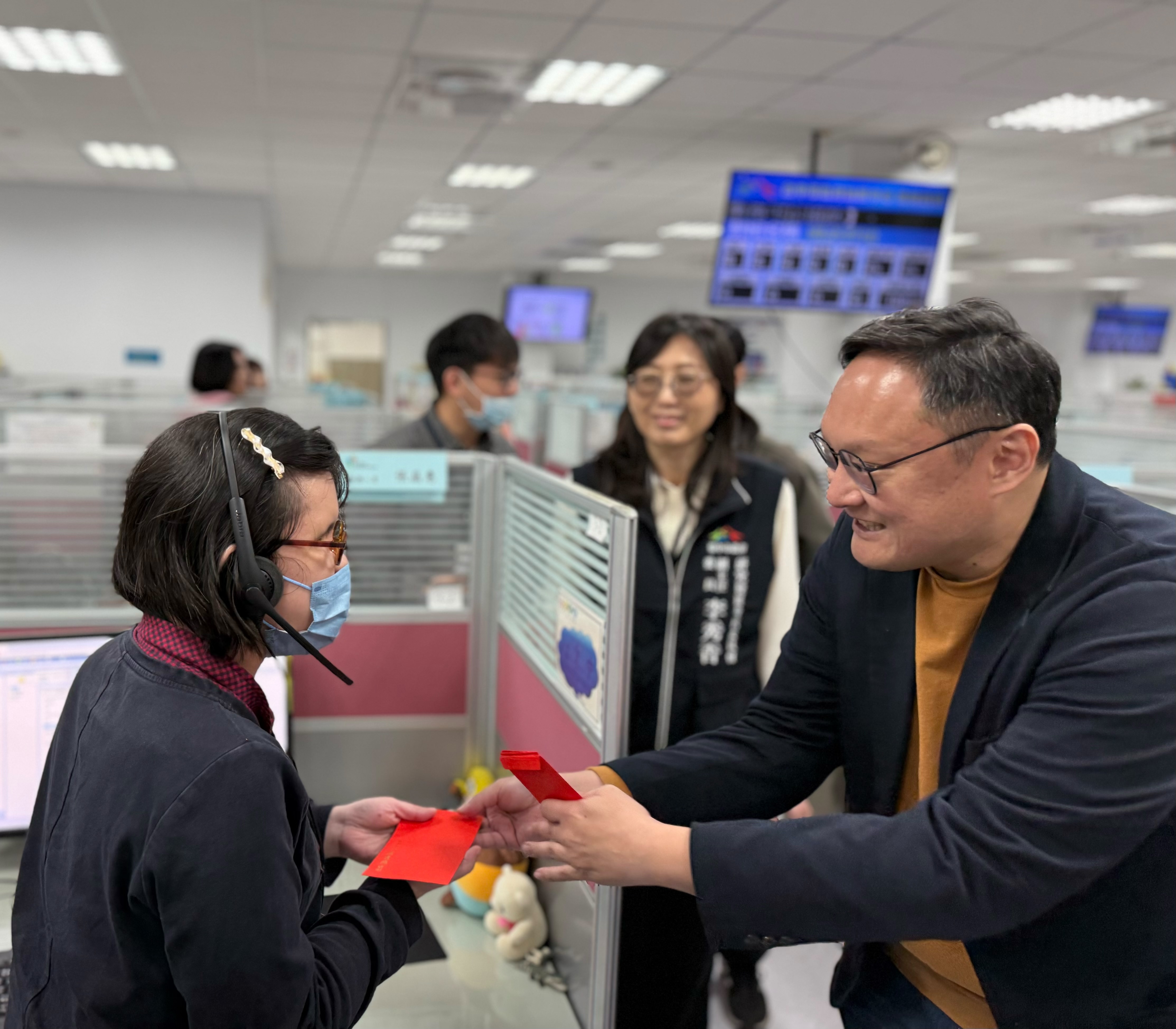 鄭副市長表示,1999專線是市民反映市政問題與諮詢服務的重要窗口。近期市府推動房屋租金補貼、家戶廚餘機補助及購物節等政策與活動,詢問電話量明顯增加;加上春節返鄉與旅遊人潮湧現,市民服務需求提升,更仰賴話務同仁即時應變與專業回應。他也感謝警察、消防、公共運輸、環保等市府團隊於春節期間持續堅守崗位,攜手守護城市安全與秩序。