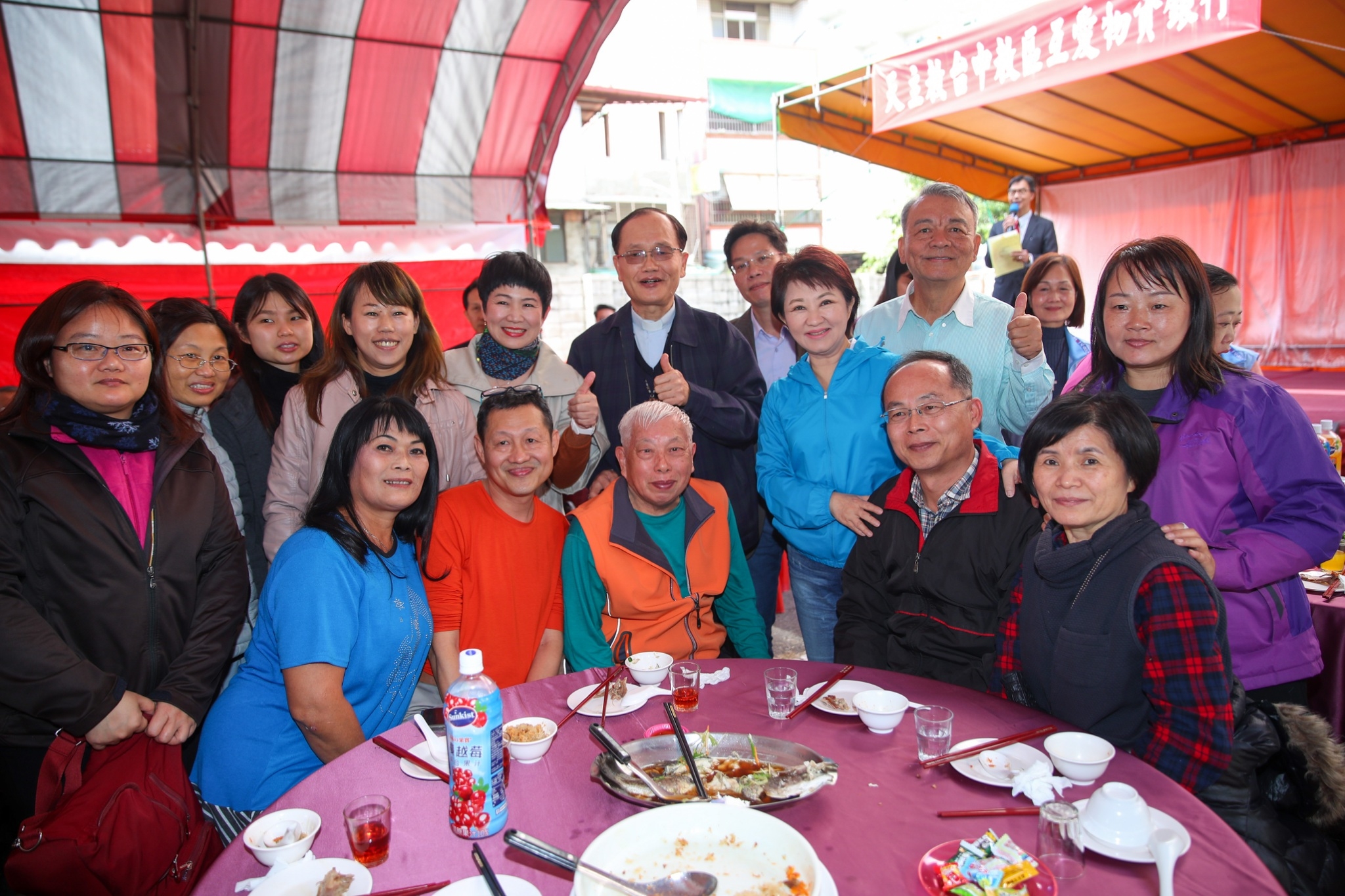 天主教台中教區主委蘇耀文表示,感謝盧市長抽空前來和民眾一起圍爐,帶來祝福與關心,也感謝許多企業和教會內等公益團體及志工們的支持,以及對關懷戶的照顧。期盼藉此拋磚引玉,吸引更多民間單位共同加入,使互愛物資銀行成為愛的服務平台。