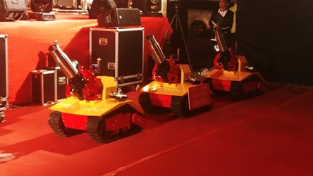 健豪印刷事業股份有限公司昨(27)日舉辦尾牙兼做公益,由總經理張訓嘉代表捐贈2組自走式遙控消防砲塔,台灣柏釧企業股份有限公司董事長黃錦章也代表捐贈1組相同設備,由消防局長曾進財代表受贈,並回贈感謝狀。